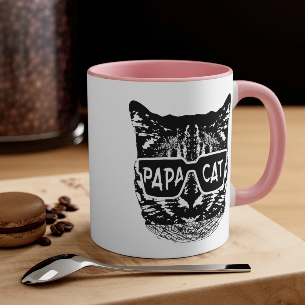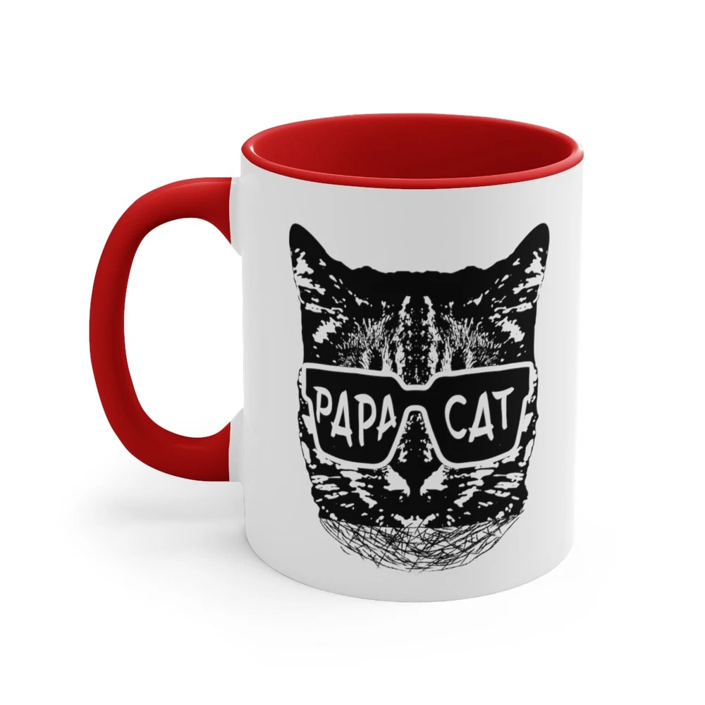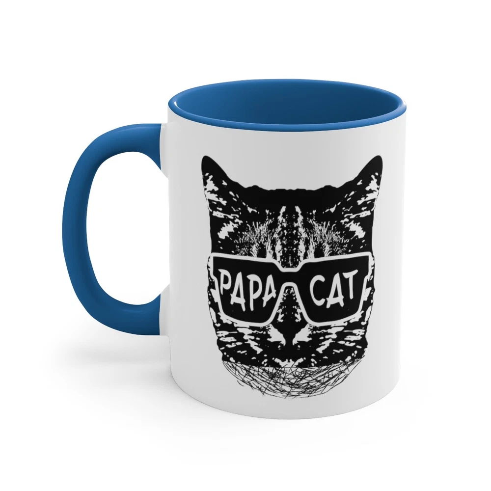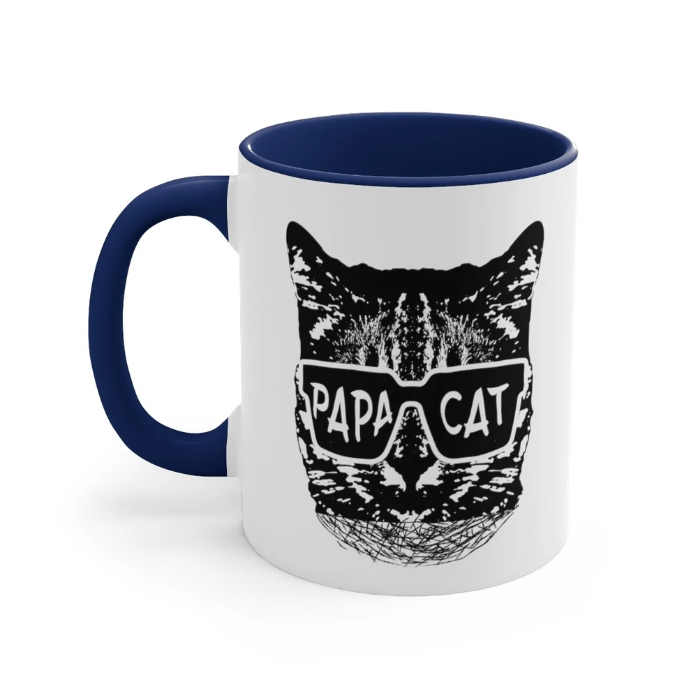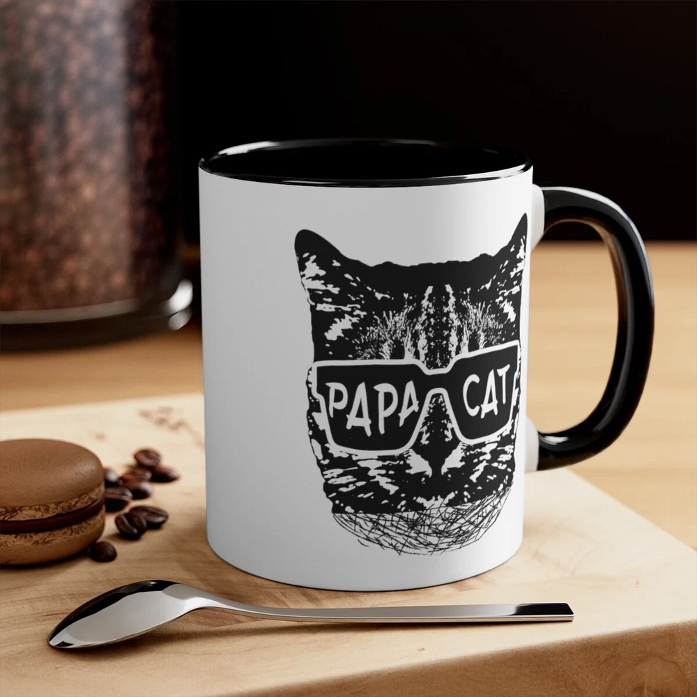 Celebrate the loving and nurturing side of dads and grandads with the "Papa Cat" coffee mug. This 11oz ceramic mug is the perfect Father's Day gift for animal lovers who proudly embrace their role as the family's "Papa Cat." With a delightful design featuring the words "Papa Cat" alongside a charming cat illustration, this mug is a daily reminder of their affectionate and caring nature. The sturdy construction ensures durability, while the comfortable handle makes it easy to enjoy a cup of coffee or tea. Whether it's a morning pick-me-up or a relaxing evening beverage, this mug is a heartfelt and thoughtful gift choice that will bring a smile to any dad or grandad who adores cats and cherishes their role as a loving and protective figure in the family. Capacity: 11oz - suitable for hot and cold drinks. Material: 100% Ceramic. Dishwasher Safe, Microwave Safe. Printed on both sides - High Gloss Finish - Image will not fade, peel, or scratch off. Perfect for Coffee, Hot Chocolate, Tea, and other hot or cold drinks. Made to order and made in the USA! Delivery includes 5 business days handling time after receipt of cleared payment.