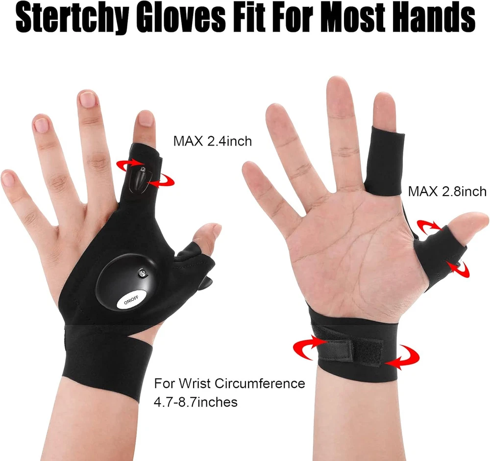 Fathers Day Dad Gifts Birthday Gadgets from Daughter Wife Black Product Features Valentines Day Gifts for Him: A unique and cool galentines day easter basket gift for men,husband,Him,Boyfriend. Stocking Stuffers Christmas Cool Gadgets Ideas: Wearing this just like wearing ordinary. And then adjust comfortable size to fix .Designed with a turn on/off button on the surface, It is convenient and easy for you to turn on or turn off when using it, and you can replace the battery easily with screwdriver. Adjustable Free Size: Made of cotton, breathable and soft The adjustable Velcro Strap can stretch to fit different sizes of hand, even big hands, the straps on the wrists are adjustable, you can adjust to fit your own size, not be loose easily when working due to nice elasticity, the strong Velcro tape can secure the gloves on you hand tightly. Wide Occasion Application: Suitable for outdoor night fishing, hunting, running, repair, camping, climbing, hiking, dog walking,travel a practical , unusual tool gadget for handymen, electrician, mechanics when work, repair, assemble needing extra light. Hand-free Gloves Gifts for Adults Who Have Everything: With 2 LED on index finger&thumb and could point to anywhere you want, bright enough for tasks. Helps a lot on working in the darkness. It's handy when no one is there to hold the light for you. Shipping: Shipping is complimentary within the lower 48 US States. We Do Not Ship to PO/APO Boxes, HI or Alaska We Do Not Ship Outside of the Continental US All items ship within 24-72 hours of Payment For large items that require Freight shipping a valid phone number is required to call and schedule your delivery Terms of Sale and Feedback: Feedback is extremely important to us and eBay If you are satisfied with our transaction, please take a moment to leave Positive Feedback. YOUR Satisfaction is our #1 Priority! If there are any issues, PLEASE contact us BEFORE leaving a neutral or negative rating so that we may resolve any concerns. We PROMISE we can make you happy if you give us a fair chance. Returns / Concerns: All items qualify for returns within 14 - 30 days of receipt. Buyer is responsible for return shipping on any item that is not damaged Please be sure this is an item you want before making your purchase. Customer Satisfaction is our TOP priority! All items are IN STOCK at time of listing. Inventory on eBay changes constantly and it is impossible to maintain a perfectly accurate count of all items. Please do not penalize us if we have to issue you a refund! Thank You For Your Business!