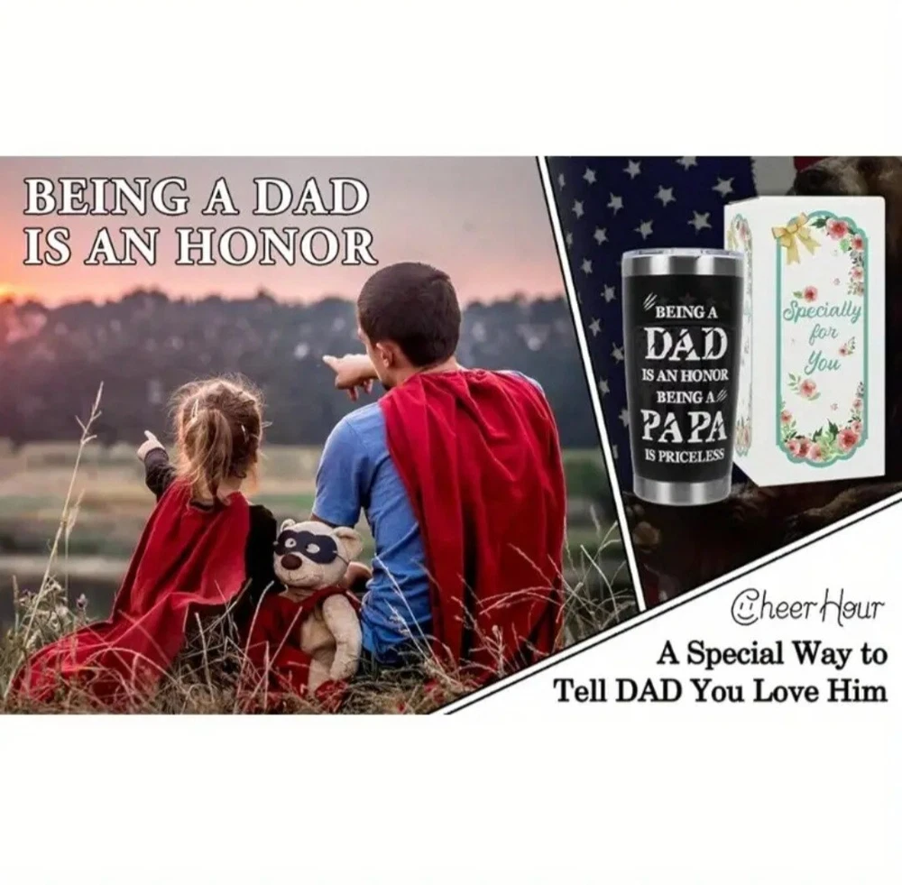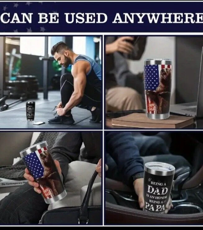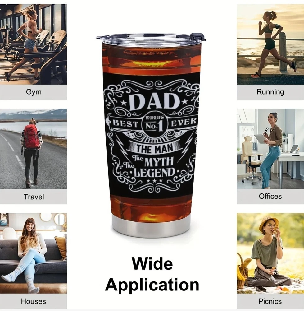 This 20 fluid ounces tumbler is a perfect gift for Father's Day, or any occasion where you want to show appreciation to a dad, stepdad or father figure. Made of 18/8 food-grade material, this tumbler is dishwasher safe and comes with a lid, bended straw, straw brush, and gift box. The tumbler features a flag print pattern and is decorated with various themes such as letters, numbers & words, Christmas, family & friends, hobbies & crafts, and more. The vacuum insulated tumbler is designed to keep your drinks cold or hot for hours. The product dimensions are 2.7"W x 6.7"H, and it is a single item that serves one person. This tumbler is suitable for adults and can be used at home, office or on the go. Surprise your dad with this tumbler and let him enjoy his favorite drinks in style.