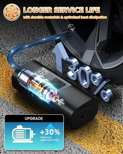 Return Policy Fast Delivery Trusted seller Fathers Day Dad Gifts from Daughter Son Wife, Tire Inflator Portable Air Compressor - 150PSI Rechargeable Air Pump for Car Tires Cordless Car Accessories for Bike Motorcycle Balloon (Black) Product Description Easy To Use : The tire inflator is very easy to operate. Simply turn the tire inflator on, press the nozzle into the tire valve, switch pressure units (psi, bar, kPa, kg/cm²) at the touch of a button and activate the switch after accurately presetting the tire pressure. It will automatically inflate and stop when it reaches the specified value, so you don't need to worry about over-inflating your tires. Fast Inflate & Save Time : The tire inflator is powered by a high quality high power motor, which is less noisy and more powerful, with a maximum pressure of 150PSI. It can inflate a standard mid-size car tire from 0 to 35PSI in 8 minutes.?Please note that after 8 minutes of continuous use, allow the tire inflator to rest for 5-10 minutes before continuing to use it. Effectively Meet The Inflation Needs : The tire inflator is made of high quality aluminum alloy material, built-in 6000mAh high capacity battery, equipped with high precision and high brightness LCD digital display, easy to read the tire pressure, help you to check the tire pressure and preset the tire pressure value. Built-in bright and long-lasting LED light can meet your inflation needs in low light environment. Multi-Purpose & Easy To Store : Tire pump with 4 extra nozzles can meet a variety of needs for inflatable products such as car tires and sports or recreational equipment. Such as cars, SUVs, motorcycles and bicycles, swimming rings, balls, etc. (❣ Not suitable for large truck tires.) Black storage bag is easy to carry and store. Great Gifts For Your Husband/Father : Are you still struggling with what to give your husband/father for his birthday & holidays? Our inflator pump can be the perfect solution to your problem! The tire inflator is packaged in a beautiful gift box, perfect as a gift for your most important one. Shipping Returns Payment Shipping Shipping is FREE to all addresses other than APO/PO boxes in the lower 48 states. All our stock ships from US-based warehouses. Shipped via USPS or UPS (depending on location and package weight) Unless stated otherwise, all orders will ship within 24-72 hours of your payment being processed. Check our feedback to see the great reviews of FAST shipping we offer. Returns Seller does not accept returns Payment We currently accept payment via eBay managed payments only. Once payment is cleared, we will dispatch your shipment within 1-3 business days. Please refer to the "Shipping" tab for more information regarding shipping speed to your destination.