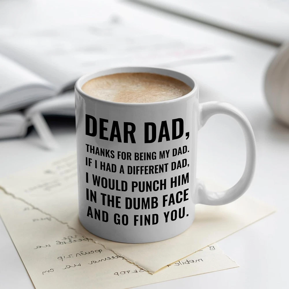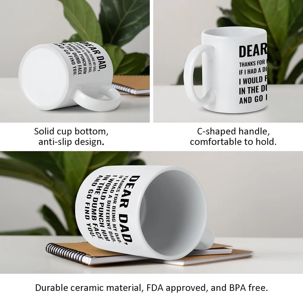 Store New Arrivals Add to Favorite View Feedback Contact Fathers Day Dad Gifts from Son Daughter, Men Gifts Birthday Gifts for Dad, Father'S Day Gifts for Dad, Cool Gifts for Dads, Step Dad Fathers Day New Dad Gifts, Funny Coffee Mug Tea Cup, 11Oz Description Item model number Gifts for Dad Style Unique Number of Items 1 Pattern Letter Print Country of Origin USA Theme Father-Child Relationship Unit Count 1.0 Count Material Ceramic Capacity 11 Fluid Ounces Product Dimensions 3"W x 4"H Package Type FFP Age Range (Description) Adult Finish Type Glossy Specific Uses For Product Cold Drinks, Hot Drinks Included Components Handle Reusability Reusable Item Weight 5 ounces Occasion Dad Gifts Special Feature Microwave Safe, Dishwasher Safe Color White Shape Round Recommended Uses For Product Home Product Care Instructions Dishwasher Safe Size Medium Fathers Day Gifts for Dad | Dad Birthday Gift | Dad Gifts | Fathers Day Gifts from Son & Daughter | Men Gifts | Birthday Gifts for Dad | Gifts for Dad Who Wants Nothing | Father's Day Gifts for Dad | Cool Gifts for Dads | Step Dad Fathers Day Gifts | Father's Day Gift | New Dad Gifts | Funny Fathers Day Gifts | Funny Coffee Mug Tea Cup FATHERS DAY GIFTS FOR DAD - This isn't just any mug; it's a laugh-out-loud gift for Father's Day. The hilarious message will have Dad chuckling every morning with his coffee. DAD GIFTS - The mug features a standout text that reads: "DEAR DAD, THANKS FOR BEING MY DAD. IF I HAD A DIFFERENT DAD, I WOULD PUNCH HIM IN THE DUMB FACE AND GO FIND YOU." It's guaranteed to leave an impression and remind Dad how special he is. FATHERS DAY GIFTS FROM DAUGHTER - Crafted from premium ceramic, this mug is built to last. It's perfect for hot or cold beverages and dishwasher safe, making it a practical yet fun addition to any dad's kitchen. FATHERS DAY GIFTS FROM SON - With an ideal capacity for his favorite drink, this mug is just right for coffee, tea, or any beverage Dad enjoys. It's not just a gift; it's a daily reminder of your love and appreciation, delivered with a hearty laugh. Product Description DAD! FUNNY GIFT READY! ABOUT US We offer the best prices around on high quality products. Our E-store includes media such as books, movies, music and games while offering electronics, toys, sporting apparel, clothing, tools, general home, garden items and more. SHIPPING We are always working hard to ensure your package arrives as soon as possible. Please understand that some factors like weather, high postal traffic, and the performance of shipping companies are outside of our control. We offer free shipping to the lower 48 states and ship within 2 business days of payment, usually sooner. We do not accept P.O. Boxes. Please provide a physical address. For shipping outside of the continental USA, we only use eBay's Global Shipping Program.The item is shipped to KY and then sent to the rest of the world. International customers are responsible for all duties and taxes. Continue to check out in order to calculate costs for shipping the item to your country. Messages regarding eBay's Global Shipping Program MUST be directed at eBay EXCLUSIVELY. RETURNS We offer a 30-Day Return Policy on items which you are not completely satisfied with. You have the option for a full-refund or an exchange of the item. No returns are available on items shipped outside of the USA. PAYMENT We accept PayPal. CONTACT US This page content is yet to come Please ad us to your favorite seller and visit again later Thank You CUSTOMER SATISFACTION We try our very best to make sure every customer is completely satisfied. If there's a problem, message us! We're happy to help. WE ACCEPT Copyright © 2021 AutoDS. | All Rights Reserved