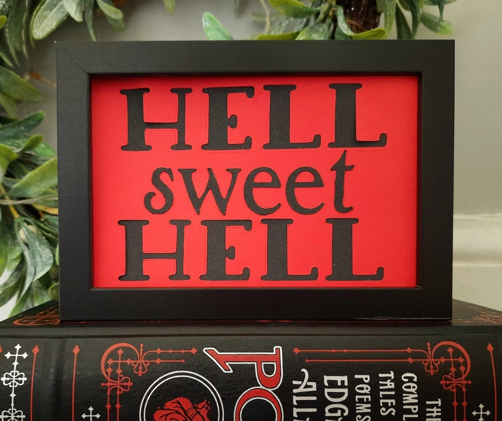 Add a touch of humour to your home decor with this handmade Gothic style wall art. Featuring a hilarious twist on the classic "Home Sweet Home" saying, this medium-sized print is sure to catch the eye of anyone who enters the room. The use of matte paper and framing adds a touch of elegance to the piece, making it a great addition to any art collection. This wall art is perfect for anyone who appreciates folk art and wants to add a unique touch to their home. The gothic subject matter will add a touch of spookiness to any room, while the humorous twist will make it a great conversation starter. Wrapped and ready to hang, this wall art is an excellent gift for anyone who loves unique and quirky home decor. Frame measures 6x4 inches and contains glass