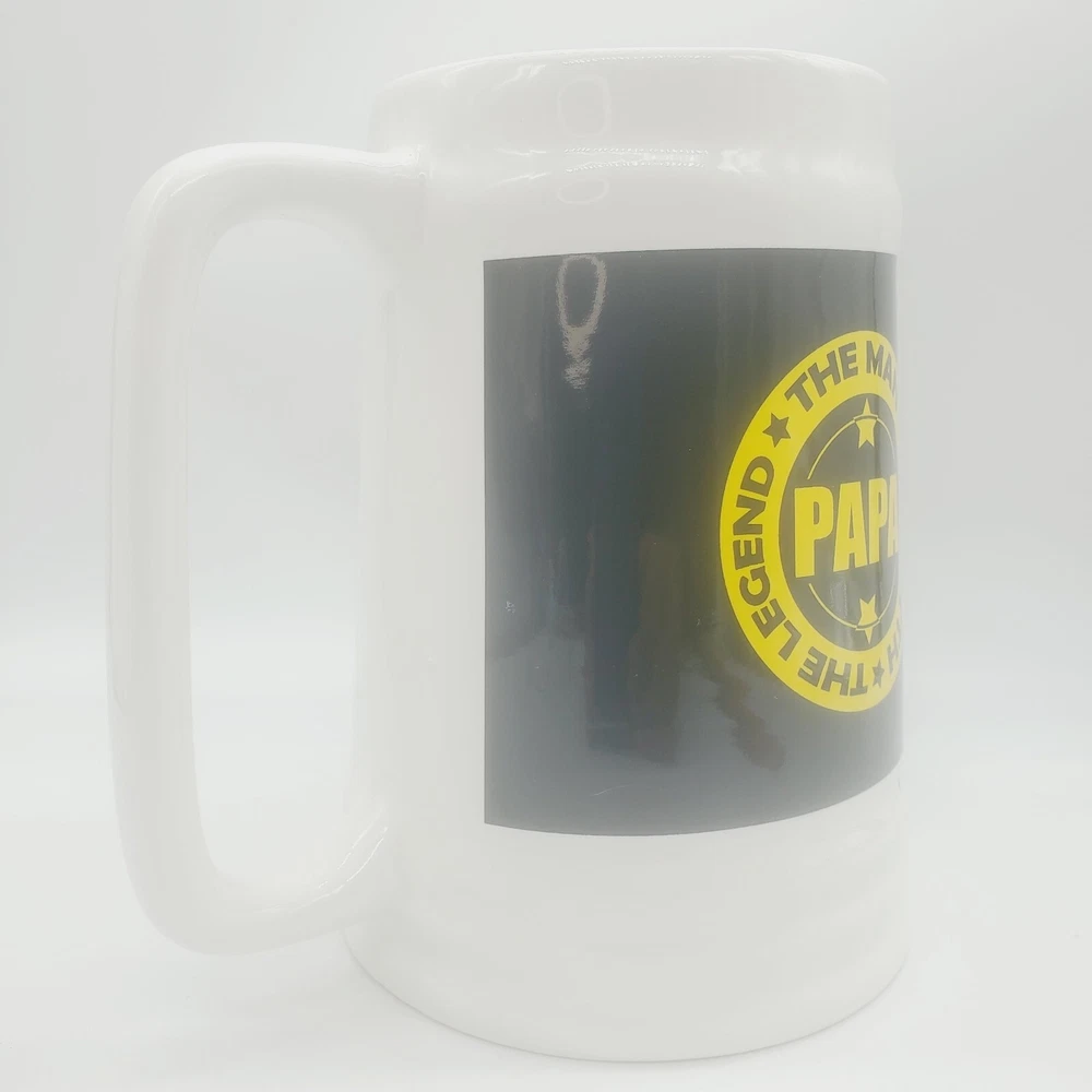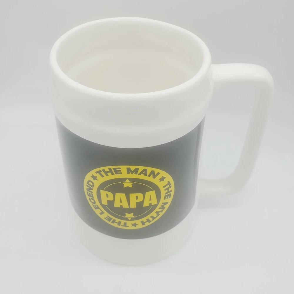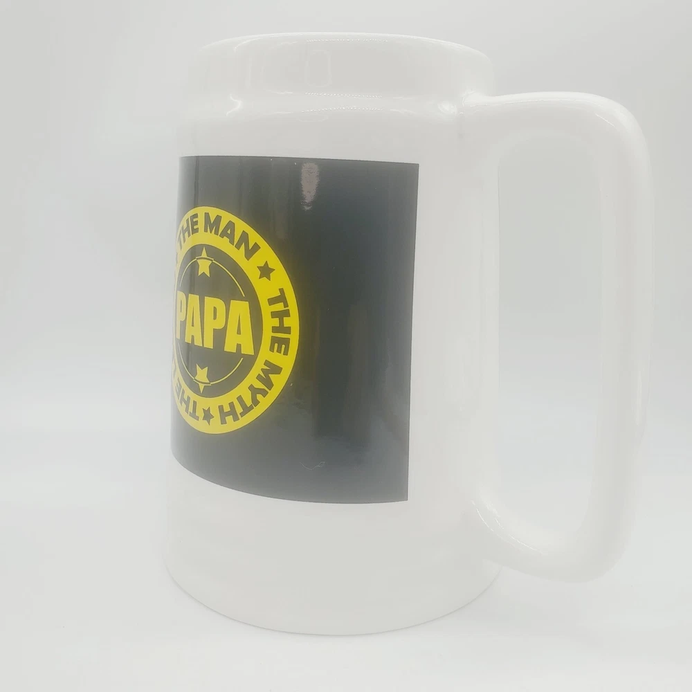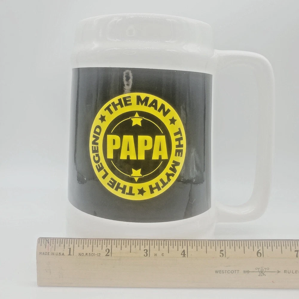 Fathers Day Giant Huge Coffee Beer Mug Cup Gift Papa Father Grandpa Grandfather Ceramic 🌟 Kitchencore See the video Surprise your dad with this giant mug this Father's Day and show him how much you appreciate him. The white ceramic mug features a special Fathers Day design with words that will make any dad feel special. Perfect for enjoying his favorite hot or cold beverage, this jumbo mug is a great addition to any collection. PAPA, The Man The Myth The Legend, Giant Coffee ( or Beer ) Mug! Approximately 7" tall by 6-3/4" wide including handle One slight mark towards bottom front of mug It's a very large mug! Perfect gift for Dad / Papa / Father / Grandfather / Grandpa for any occasion! When shipping with boxes, I ship with repurposed, recycled boxes that have been previously used. The box may be irregular. I may customize a re-cut, resized "Frankenbox" to achieve a certain size or shape. It may have erroneous markings and it may not be the prettiest one out there :) Using right-sized, recyclable packaging minimizes waste, SAVES COSTS TO THE BUYER, and helps ensure damage-free delivery. I strive to optimize the type of material and weight needed to deliver products safely