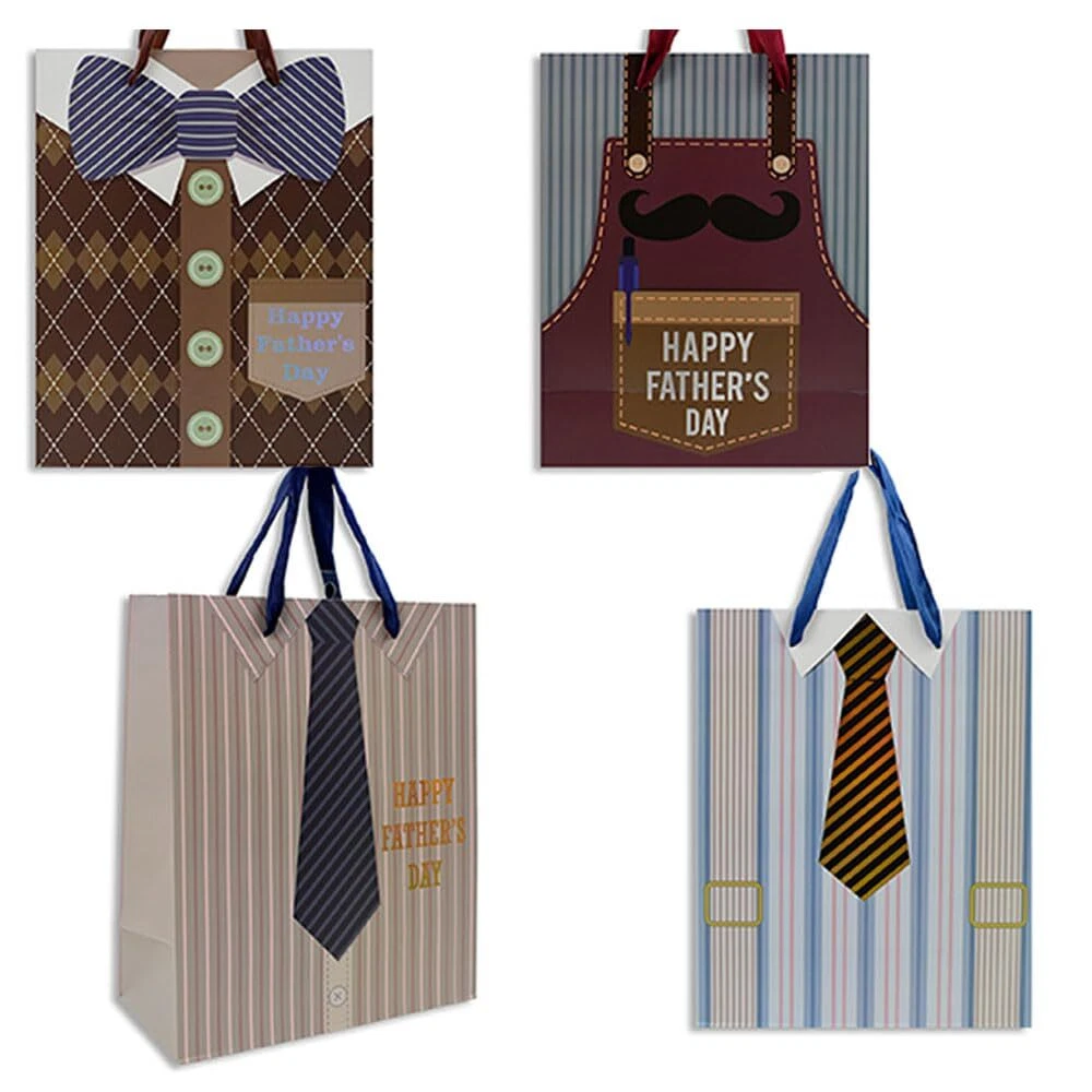 Fathers Day Gift Bags, Gifts for Dad Shirt and Tie, Mustache Grilling Apron and Bowtie Style Set - 4 Piece Set - 9 Inch Description and features The perfect way to wrap your Father's Day gift for your dad on his special day! Purchase is for a set of 4 individual gift bags. Each bag is designed to look as a classic shirt with long tie, bowtie, grilling apron or sweater; complete with shimmering details. The phrase 'Happy Father's Day' is printed on an assortment of the bags making it the perfect way to show your appreciation. Made of quality cardstock materials with a durable ribbon threading for secured carrying. Bags measure approximately 9 x 7 x 4 inches in size. The perfect way to wrap your Father's Day gift for your dad on his special day! Purchase is for a set of 4 individual gift bags. Each bag is designed to look as a classic shirt with long tie, bowtie, grilling apron or sweater; complete with shimmering details. The phrase 'Happy Father's Day' is printed on an assortment of the bags making it the perfect way to show your appreciation. Made of quality cardstock materials with a durable ribbon threading for secured carrying. Bags measure approximately 9 x 7 x 4 inches in size. Not a toy. For decorative use only. Return Policy ⦿ All our products come with a 30-Day Return Policy. If you would like to return your item and you are within 30 days of the purchase, and it is still in its original condition, you can return the item by contacting us through eBay messaging. ⦿ If you are not 100% satisfied, please let us know the Detailed Problem,We will give you a 100% satisfactory solution ⦿ If you received an incorrect, damaged, defective, or item not as described, contact us for a partial/full refund or replacement on our cost. ⦿ Free Shipping and Free Return 30-Days Money Back Guarantee. ☎ For all returned products, buyers MUST contact us for the returning address. Shipping ⦿ We do not ship to a different address. we will ship to the address you provide on the ebay only. Please check your address before purchase. ⦿ It should take 2-4 business days for the product to reach your destination. ⦿ If the product doesn't reach your destination within the time limit, please give it an additional 1-2 business days in case of postal delays and/or possible technical issues. ⦿ We use a selection of shipping services such as UPS, FedEx, USPS etc. ⦿ We ship only to the 48 contiguous states of America. We do not ship to Hawaii, Alaska, US Protectorates, APO/FPO addresses. Local pickups are not offered. ☎ If it takes any longer than that, please do not hesitate to contact us to resolve the issues. Contact us ☎ Please contact us via eBay message. And your message will be replied within 1 business days. For any queries, please feel free to contact us, we will get back to you as quickly as possible. Customer 100% satisfaction is our first priority and goal. We are always working hard for maintain high standards of excellence and resolve your problem in best way. So your POSITIVE FEEDBACK is very important. If you have any problem of the item, please feel free to let us know before leaving your feedback. We will try our best to solve your problem. About us We are here to give you quality products, competitive pricing and amazing service in order to make sure you get the best deal online, Thank you for your business and the opportunity to serve you.