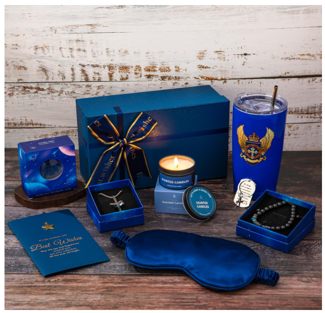 About this item 【Gift Box Package】:The gifts set comes with Insulated Tumbler, Silk Eye Mask , Men's Bracelet,Soap ,Scented Candle,Cross Necklace,Keychain,Greeting Card, Exquisite gift box and some accessories such as lid, straws. 【High Quality Tumbler】:Our tumblers are made of stainless steel material, the double walled vacuum insulated design maintains the suitable temperature for his favorite drinks for hours.Our stainless steel travel tumbler is not only suitable for many outdoor or indoor occasions such as home, office, picnic, hiking, fishing. 【 Lucky Bracelets】: These bracelets are made of natural stone beads with excellent high luster and natural color. The natural stone bead possess low density, lightweight for people to wear.The bracelet is a symbol of good fortune.Its high-quality rope construction ensures durability, while the adjustable length makes it a perfect fit for any wrist. 【Scented Candle for Relaxation】: Our scented candle is designed to create a calm and serene environment; The pleasant fragrance will help him unwind after a long day, making it an ideal part of his relaxation routine. 【Best Gifts for Men On Any Occasion】:This funny gift basket for men is a thoughtful gift for any celebration. Hand it out during birthdays, Father's day, Christmas, or any other day of the year! When he receive the mens gifts he will deeply feel your love!That Would Remind Him of you every time when he uses the mens gift. 【Man Gifts】:If you are looking for a Curated Father's Day Gift, our Unboxment Gift Box is an elegant package that comes with practical gifts for men. Our box filled with love and thanks can brighten up a memorable Father's day, may it be your dad, papa, grandpa, husband, stepfather, or father-in-law.