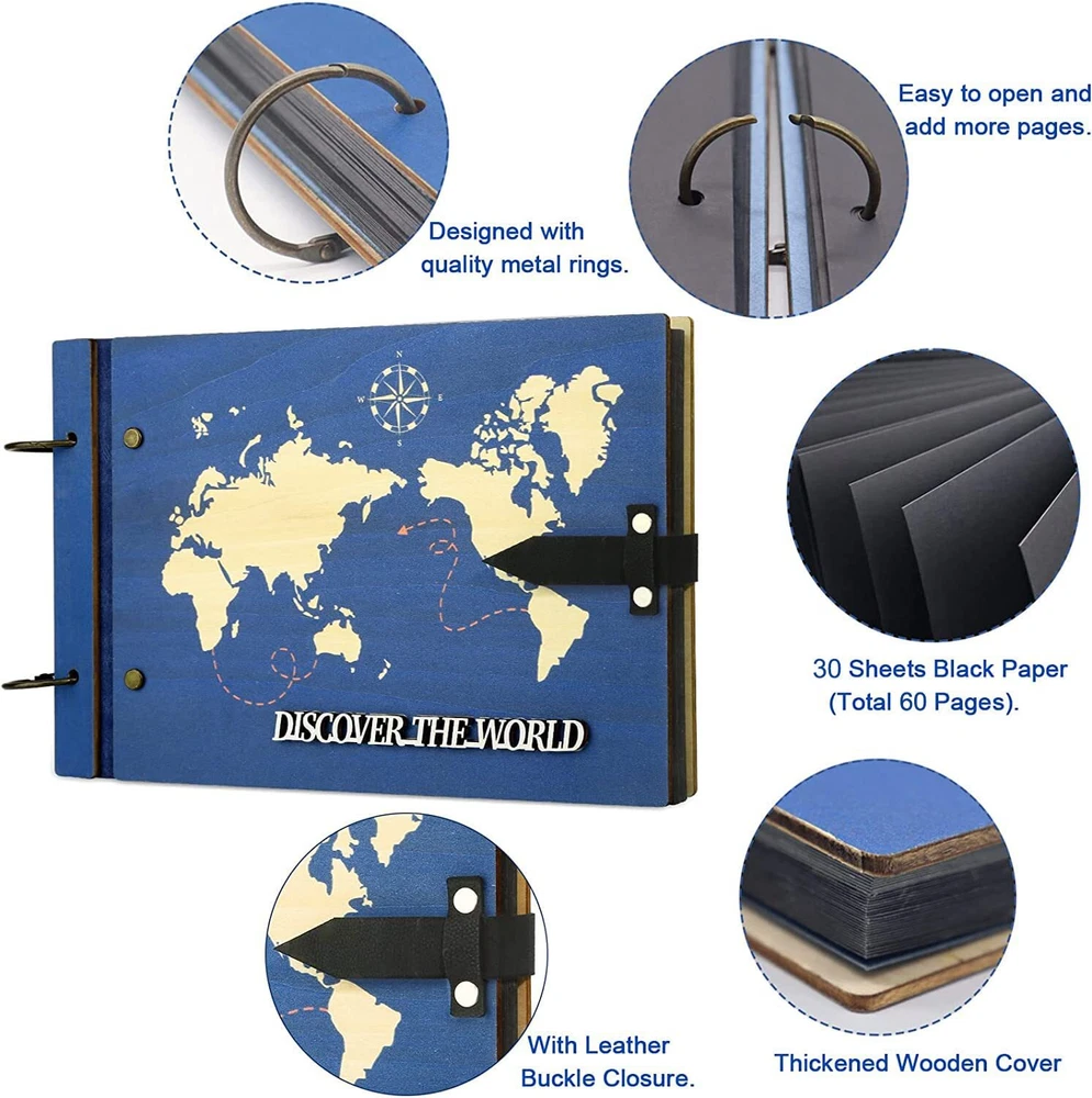 Fathers Day Gift From Wife/Daughter/Son Wooden Scrap Book Album World Map Travelling Journal Scrapbook Our Adventure Book, Scrapbooking Kits DIY Scrapbook Memory Photo Book for Couples Description and features đ·ăTraveling Theme Photo Albumă: This travel scrapbook is designed with wooden cover, which is made of high quality hard wood board,waterproof and durable; đ·ăScrapbooking Supplies Kitsă: Come with 1 x Wooden Scrapbook, 12 x Metallic Markers, 5 x DIY Drawing Templates, 3 x Decorative Stickers, 3 x Photo Corner Stickers. đ·ăScrapbook with 60 Pagesă: It 30 Sheets Thick Black Paper / 60 pages . for 5x7, 4x6 photos; This scrapbook can hold up to 120 pcs of 4*6 photos. đ·ăBinder Scrapbookă: This scrapbook is bound together with 2 adjustable stainless-steel rings which allow you to add or remove pages freely. Your pictures and precious memories will be preserved in this special photo album. đăDIY Photo Albumă: You can write your story and painting on it. Sometimes the moment can be eternal. It can also be used as a adventure book, travel scrapbook album, adventure photo album,wedding guest book, engagement scrapbook, sketchbook,graduation scrapbook,Polaroid photo album, journal scrapbook, diary book. Return Policy †All our products come with a 30-Day Return Policy. If you would like to return your item and you are within 30 days of the purchase, and it is still in its original condition, you can return the item by contacting us through eBay messaging. †If you are not 100% satisfied, please let us know the Detailed Problem,We will give you a 100% satisfactory solution †If you received an incorrect, damaged, defective, or item not as described, contact us for a partial/full refund or replacement on our cost. †Free Shipping and Free Return 30-Days Money Back Guarantee. â For all returned products, buyers MUST contact us for the returning address. Shipping †We do not ship to a different address. we will ship to the address you provide on the ebay only. Please check your address before purchase. †It should take 2-4 business days for the product to reach your destination. †If the product doesn't reach your destination within the time limit, please give it an additional 1-2 business days in case of postal delays and/or possible technical issues. †We use a selection of shipping services such as UPS, FedEx, USPS etc. †We ship only to the 48 contiguous states of America. We do not ship to Hawaii, Alaska, US Protectorates, APO/FPO addresses. Local pickups are not offered. â If it takes any longer than that, please do not hesitate to contact us to resolve the issues. Contact us â Please contact us via eBay message. And your message will be replied within 1 business days. For any queries, please feel free to contact us, we will get back to you as quickly as possible. Customer 100% satisfaction is our first priority and goal. We are always working hard for maintain high standards of excellence and resolve your problem in best way. So your POSITIVE FEEDBACK is very important. If you have any problem of the item, please feel free to let us know before leaving your feedback. We will try our best to solve your problem. About us We are here to give you quality products, competitive pricing and amazing service in order to make sure you get the best deal online, Thank you for your business and the opportunity to serve you.