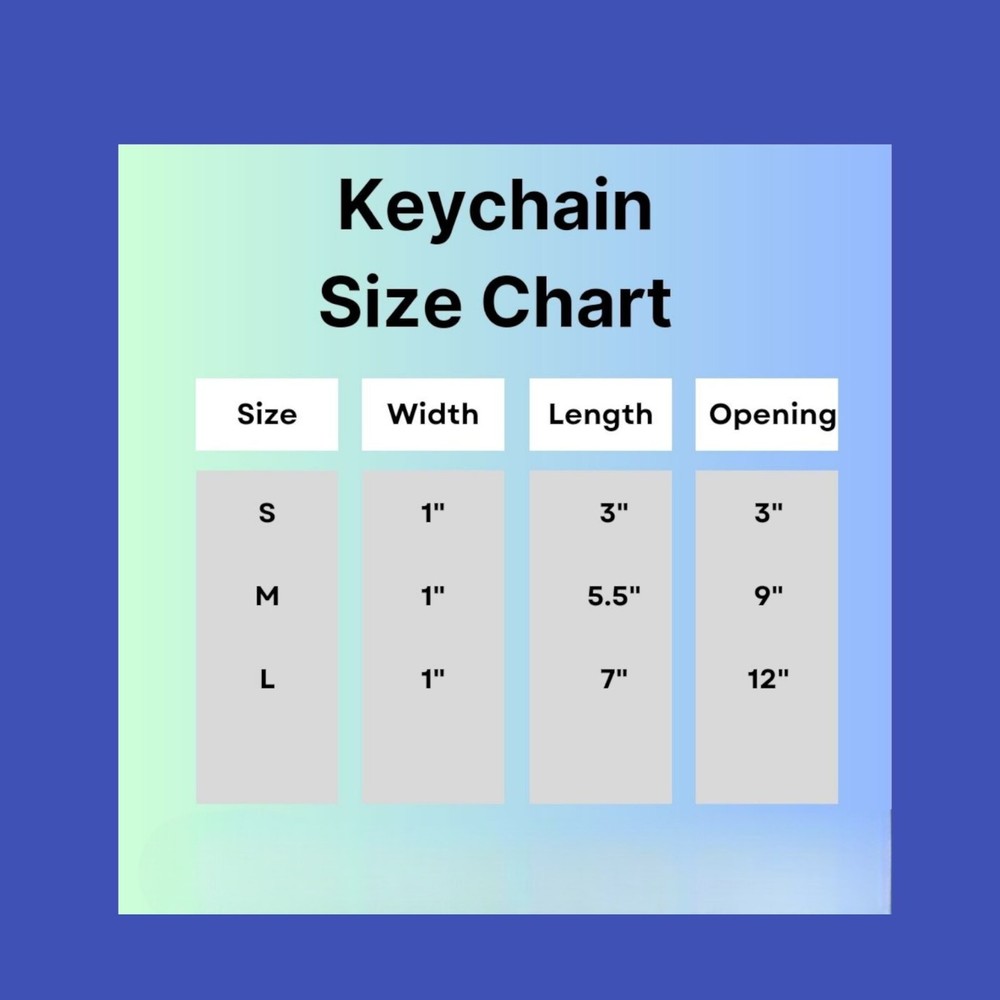 🔑The Med & Large Loop can be worn around the wrist for hands free use. Small Keychain is NOT a wristlet. These make great gifts. 🔑Free USPS Ground Advantage shipping INCLUDES tracking number. 🔑The Design Ribbon for the Keychain/Fob/Wristlet is sewn to Strong Nylon webbing for durability. 🔑 Use for: Keys/remote/Zipper Pull for Backpack or anything with zipper. 🔑All Designs come in all 3 sizes. 🔑If you have any questions, feel free to reach out to me. I will respond in 24 hours or less. 🔑NOTE: All measurements are done manually so a slight difference +/- in millimeters could occur. 🔑The total length of keychain/Fob is the Fabric and the silver cap - not the rings. 🔑Measurements don't include the actual key/fob. 🔑NOTE: The pattern may look slightly different from the photo - the pattern will vary depending on where it was cut from ribbon. 🔑 Material: gross grain ribbon, assorted Durable webbing and silver metal 🔑Key/Key Fob/NOT included.