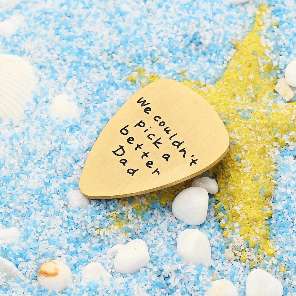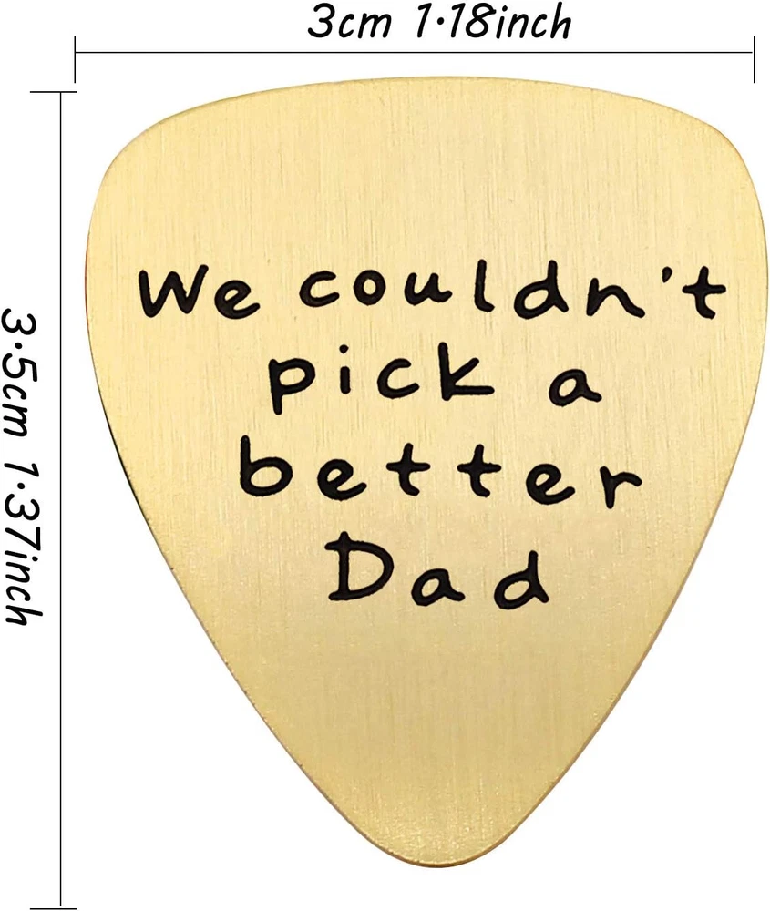 Fathers Day Gift Mens I Couldn'T Pick a Better Dad Guitar Pick Custom Gift for Daddy Papa Stainless Steel (Gold We Could) If you need engraving the any words please choose the option - Personalized Back ,and send the message to tell us which you want engraved at back,like name,date,best wishes... 3Colors - Base/Gold/Rose Gold; I Couldn't Pick A Better Dad Fathers Day Gift, Gift for men, Guitar Pick, Custom Guitar Pick, Gift for Papa From Daughter Son Stainless steel - Meet rigid safety and non-toxic materials standard ,no distortion, no damp, no rust PERFECT GIFT for DAD not just for father's day birthday but for any time of the year!The love between father and daughter ,father and son is forever! The best gift for Father Daddy Papa! - I Couldn't Pick A Better Dad - For Men ! Unique design Guitar Pick ,Gift for Dad! Condition :100% New,High Quality! Material :Stainless Steel Packing Include :1pcs Guitar Pick/key chain(Free jewelry bag) 3.5 inches x 5.1 inches x 0.4 inches. Weight: 0.81 oz Item model number JT0001BP Style Personalized, Musical Color Gold We Could Brand lauhonmin Material Stainless Steel Material Type Stainless Steel Compatible Devices Guitar Item Weight 0.81 ounces Color Name Gold We Could Is Discontinued By Manufacturer No Package Dimensions 5.1 x 3.5 x 0.4 inches Size Small