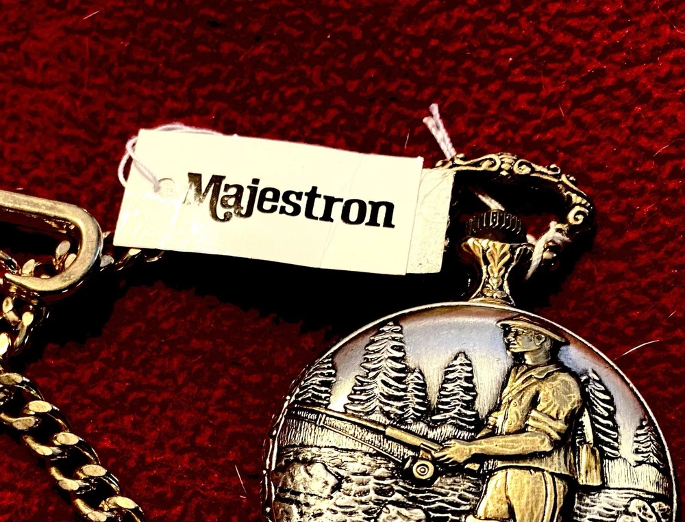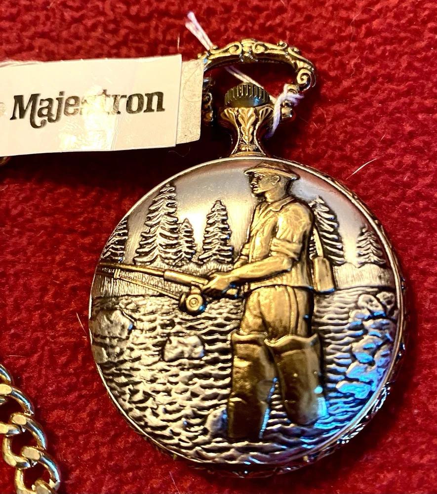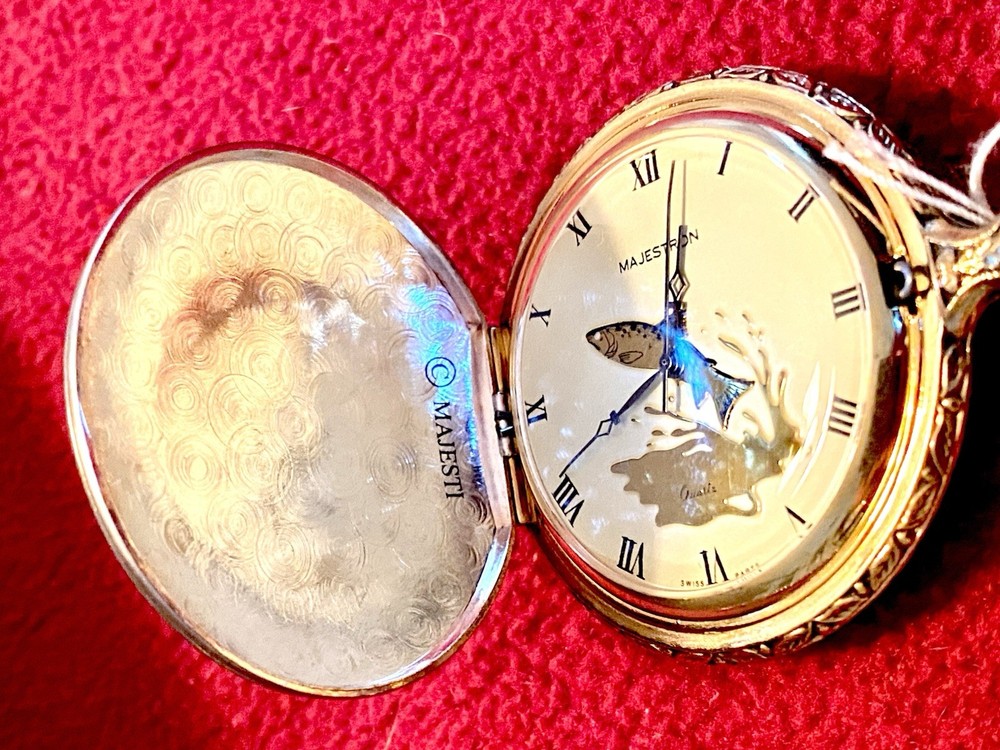 Fathers Day Gift Vintage Majestron Mens Fishermen Pocket Watch Gold Silver