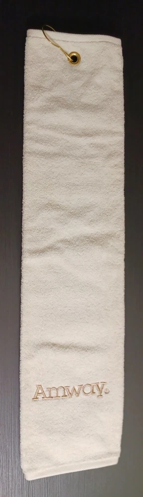 Amway Golf Towel with Grommet and Clip 100% Cotton Made in USA Hanging unused golf towel in like new condition. Clean. Suitable for gift giving. Great Father's Day gift! Measures approximately 16" x 26.5". See photos of the exact item you will receive. Ships from my clean, non-smoking home. Shipping includes tracking. G0104241WESAV