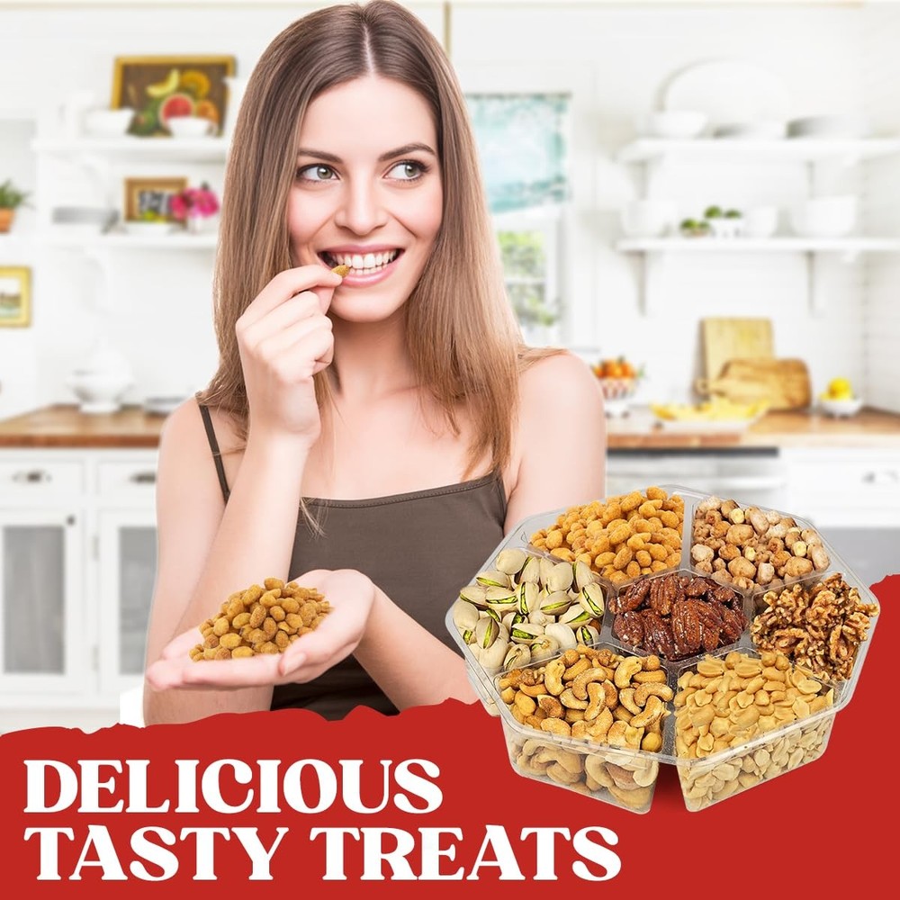 Fathers Day Nuts Gift Basket - 7-Section Platter with Fresh Assorted Nuts
