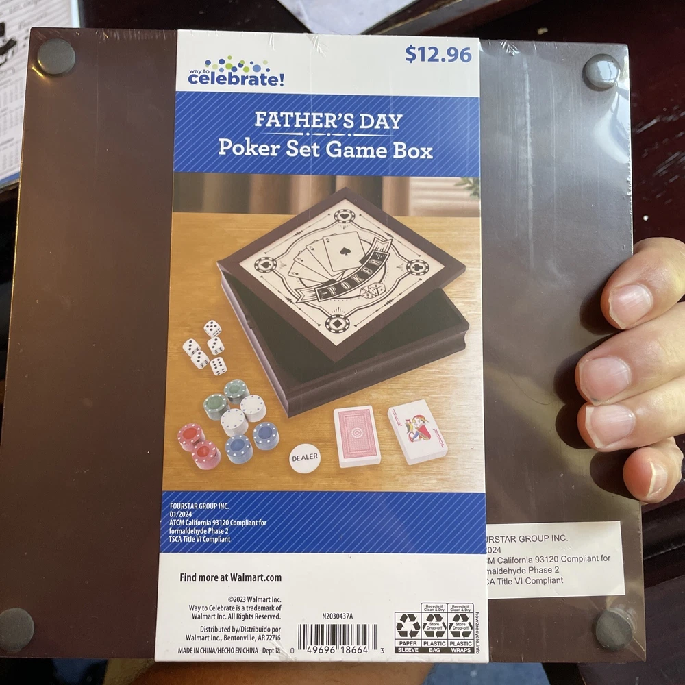 Fathers Day Poker Set Game Box New Cards, Chips, Dice Dealer Button