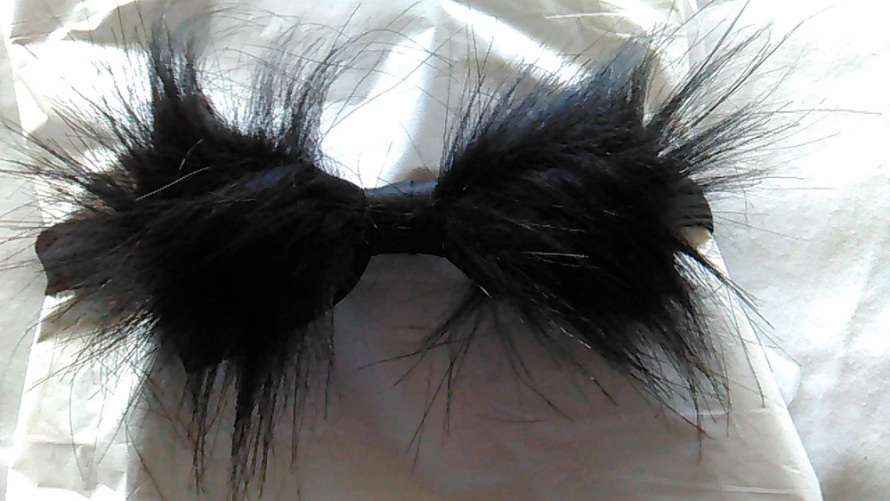 Black faux fur bow tie standard size