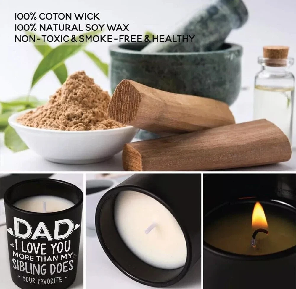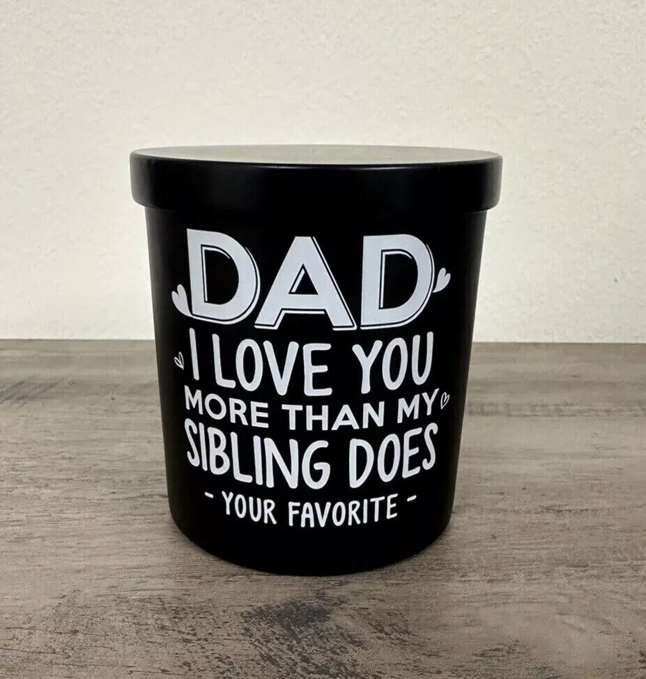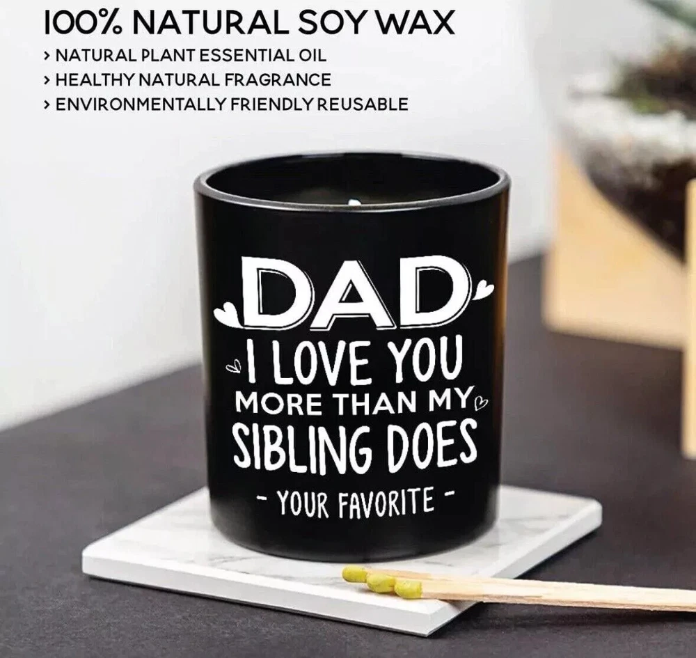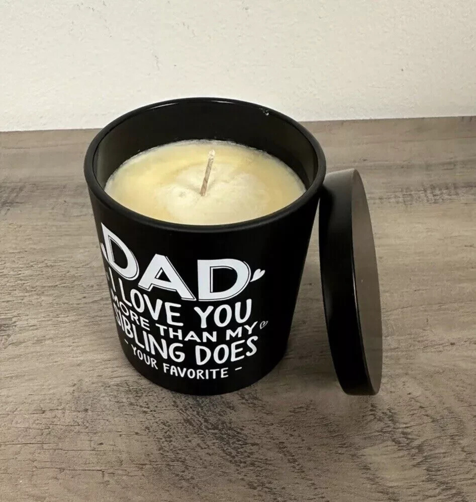 Fathers Day Gift, Gifts for Dad on Christmas from Daughters, Son, Kids - Dad Gifts - Dad Birthday Gift - Birthday Gift for Dad, Meaningful Present for Dad - Soy Wax 7.8 oz Condition: NEW Same Day Shipping This funny sandalwood soy candle with a humorous saying: Dad, I Love You More Than My Sibling Does - Your Favorite -. It is a great and cool gifts idea for dads from kids. Also, good gifts show your appreciation and love for your dad who has everything. HAPPY DAD BIRTHDAY GIFT - Classic jar candle is a fun birthday gift for men. Specially designed gifts for dad, stepdad, father, father in law, daddy, Papa, boyfriend, husband, new dad, bonus dad, new father, fist time dad, foster dad, grandpa, dad funny gag gifts from daughter, wife, baby girl, or kids. 100% NATURAL SOY WAX - This unique Sandalwood candle is made of 100% natural soybean wax and a cotton wick. It is non-toxic and harmless, create with a fresh fragrance without black smoke, and maintains 50-60 hours long lasting. A RELAXING GIFTS FOR MEN - Premium sandalwood scented candle is great for sleep-promoting and relief from anxiety, depression, and stress; A perfect addition to bathroom, bedroom, kitchen, living room, office etc. Funny gift for men in your life to creat a stressless and comfortable life. Dad Candle Gifts for Dad from Daughter Son Birthday Gifts for Dad for Fathers Day 7.8 Oz Sandalwood Scented Candles Bday Christmas Presents Eco-Friendly Long Lasting Natural Soy Max