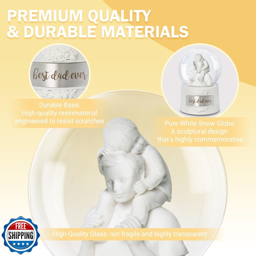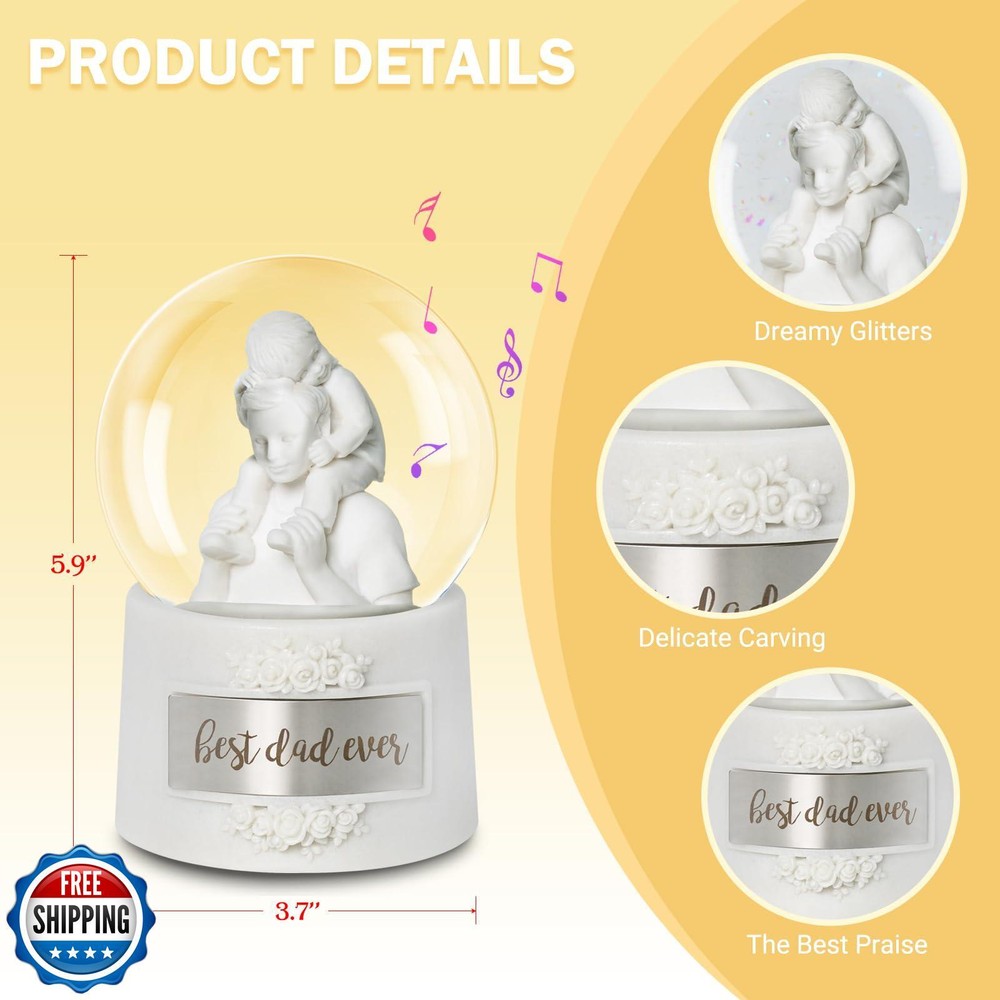 Fathers Day Snow Globe, 5.9" Wind Up Music Box for Father's Day Decorations Birthday Gifts for Dad Father Men Adults Kids Features 【HARMONIC TREASURE】Crafted with pearl-white resin, this 5.9"*3.7" Fathers Day Snow Globe showcases timeless design. The hand-wound music box features a rotating diorama of a father carrying his child on shoulders, captured through precision craftsmanship. Pearl-white base radiates versatile elegance, ideal as Fathers Day Decorations or memorable Birthday Gifts for Dad. 【CLASSIC WIND-UP DESIGN】Experience nostalgic charm with our battery-free snow globe. Rotate the winder 2-3 times clockwise (never exceeding 3 full turns) to activate both swirling snowflakes and a soothing melody. These dual-motion snow globes maintains time-honored craftsmanship while delivering consistent performance for lasting enjoyment. 【BONDING TABLEAU】Sculpted details celebrate fatherhood - from the crisp white tee's realistic folds to secure shoulder hold. The pearl-white composition creates sophisticated decor, equally suited as office desk accents, bookshelf displays, or gaming room centerpieces. A refreshing choice among Fathers Day Gifts collections. 【GIFT-READY DURABILITY】This handcrafted music box features dual engraved plates - one permanently cast with 'Best Dad Ever' in bold lettering, plus a companion blank plate for personalized inscriptions. Note: Gently bend the metal piece to match the curvature of the snow globe before attaching it. 【CRAFTSMANSHIP ASSURANCE】Backed by 12-year specialty expertise, each Father Day Snow Globe undergoes triple-stage quality checks for smooth rotation and balanced audio clarity. Our dedicated support team provides prompt assistance for any inquiries, maintaining confidence in this lasting Birthday Gifts for father and holiday tradition. Shipping Free & Fast Shipping: We offer free shipping to most of the USA with a normal delivery time of 3-7 days. However, due to the current situation, additional delivery time (up to 3 weeks) may be required for some items. Alternative Carriers: We may use alternative carriers (e.g., USPS, FedEx, UPS) to ensure your package arrives safely and on time. Due to the use of multiple carriers, we are unable to provide a tracking number automatically. Handling Time: Orders are processed and shipped within 1-2 business days of receiving cleared payment. Shipping Restrictions: Shipping to Alaska, Hawaii, Puerto Rico, Guam, and other US territories may incur shipping charges or delivery restrictions. Please contact us before ordering, or your order can be refunded/cancelled. State Restrictions: Certain items may not be shipped to California due to state regulations. Contact for Tracking Updates: If you require tracking updates or have any concerns about the delivery of your order, please feel free to contact us, and we will be happy to assist you. Return Policy 30-Day Hassle-Free Returns: If you are not completely satisfied with your purchase, you can return the item for free within 30 days of receiving it for a full refund or exchange. Easy Return Process: Contact us, and we will provide you with a prepaid return shipping label and detailed instructions. No Restocking Fee: There are no restocking fees for returns. However, the buyer is responsible for return shipping costs if the return is not due to a seller"s error. Refund Processing: Refunds will be processed within 1 business day of receiving the returned item in its original condition. Feedback Your feedback is extremely important to us. We strive to provide the best products and customer service possible. If you are satisfied with your purchase, please take a moment to leave us a positive review. If you have any concerns or issues with your order, please contact us before leaving negative feedback. We are committed to resolving any problems and ensuring your satisfaction. Contact Us If you have any questions or concerns, please feel free to reach out to our customer support team. You can contact us through the eBay messaging system. We are available Monday to Friday, 9:00 am to 5:00 pm EST, and we will do our best to respond to your inquiry within 24 hours. Thank you for supporting our small family business!