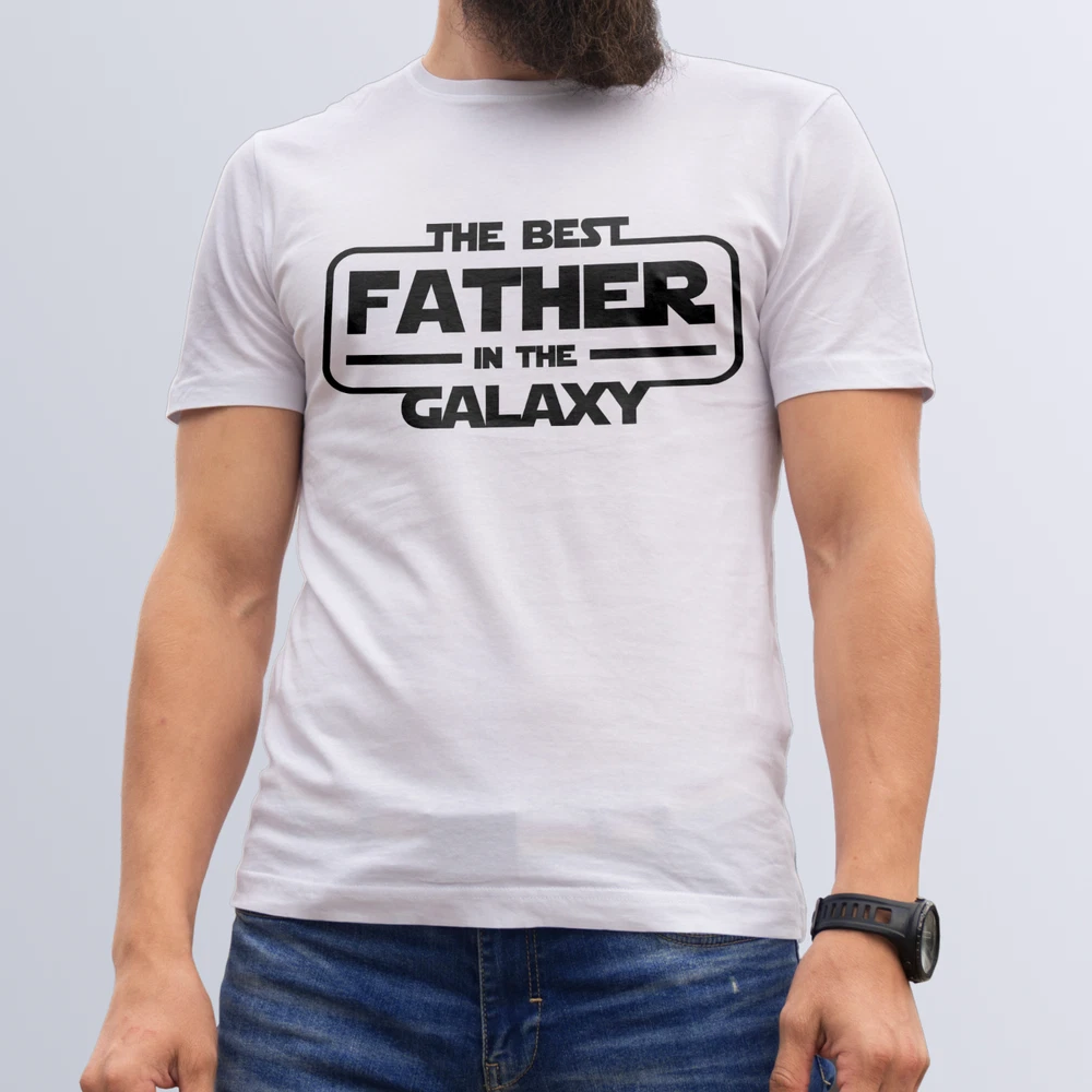 Star Wars Inspired Father Day T Shirt "The Best Father in the galaxy" Description High Quality Cotton printed T-Shirt made with High Quality Inks. The Images are made using our Direct to garment techniques using superb quality materials. The DTG process means the colours won't peel and Printed directly onto the t-shirt These T-shirts are only available in white. This T-shirt is made from 100% Cotton with an even and smooth surface ·Comfortable body length construction for a perfect retail look ·For long-lasting comfort, the neck seams are reinforced with soft binding ·Thin collar in self-fabric for modern, up-to-date appearance. Care MACHINE WASHABLE - WASH INSIDE OUT AT 30c TUMBLE DRY - DRY INSIDE OUT - SHORT/ WARM IRON - WARM INSIDE OUT The design is created & owned by our self, so there for we can change wording to suit your requirements. Returns Returns will be accepted. But we do advise looking at the size guide on the listing before ordering. Delivery **Please order 7 working days before the needed date to avoid disappointment because delays in postage through Royal Mail happen ** We Post 2nd Class via Royal Mail First Class is optional for buyer to pay extra for faster delivery (Due to change of circumstances, Parcel's may get delayed) We have no responsibilities on the Royal Mail timescale Please expect these delays from them, not us.