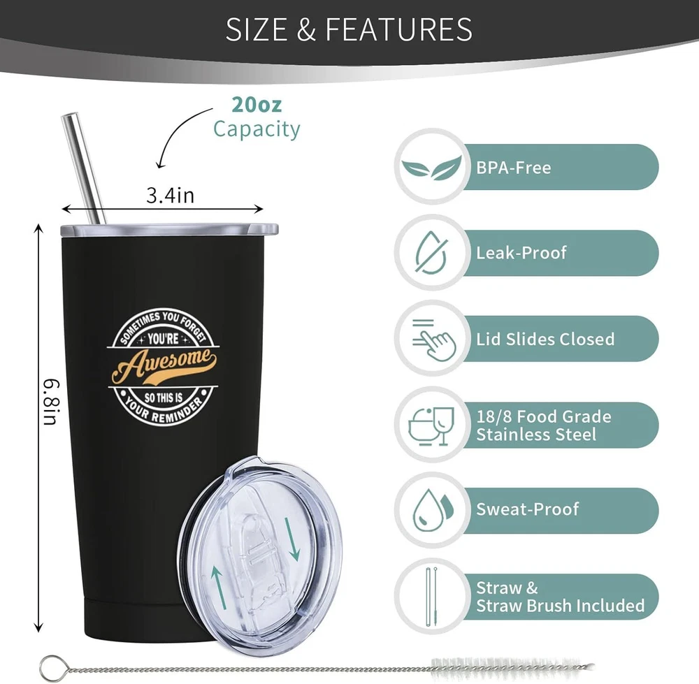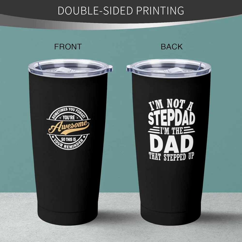 Fathers Day Step Dad Gifts, Bonus Birthday BLACK- to bonus dad Product Details Brand: NVFCC Color: BLACK- to bonus dad Special Feature: Vacuum Insulation Style: Modern Theme: Funny,Love MaterialCapacity: Stainless Steel20 Fluid Ounces GIFTS FOR BONUS DAD WITH HIS FAVORITE WORDS – Surprise your beloved stepdad with a heartwarming present that captures the essence of your love. Imagine the joy and delight on his face when he opens this gift and reads the heartfelt message printed on the tumbler. Whether you're celebrating a special occasion or want to express your love and gratitude, Show your stepdad how much you cherish him with our touching tumbler. Place your order today and give the gift of warmth and unwavering love. BEST STEPDAD GIFT IDEAS – Looking for the perfect sentimental gift for your bonus dad? Look no further than our tumbler with heartwarming quotes - the ideal present for Father's Day, birthdays, wedding anniversaries, Thanksgiving, Valentine's Day, Christmas, and other special occasions. Express your love for your bonus dad in the best way possible with this unique and thoughtful gift to enhance your bond. Let your bonus dad know how much he means to you with our touching tumbler. DOUBLE-WALL VACUUM INSULATION – We use double-wall insulation to help retain hot and cold liquid temperatures; this tumbler is the perfect way to keep your stepdad's favorite beverage at the ideal temperature. Whether sipping his morning coffee or enjoying a refreshing iced tea on a hot day, this tumbler will provide him with the perfect sip, just like a loving embrace. It's a heartfelt way to show your bonus dad that you're always there for him, no matter what. AN EVERYDAY COMPANION – This coffee tumbler is more than just a gift for special occasions. It's an everyday companion your bonus dad can take wherever he goes. It fits most car cup holders and is perfect for use at work, the gym, or any other daily activity. Every time he sips his favorite drink, he'll be reminded of your love and appreciation for him. HIGH-QUALITY MATERIALS – This tumbler is made of high-quality 18/8 food-grade stainless steel, which is odorless and environmentally friendly. The BPA-free clear lid that seals the cup tightly controls spills and allows you to see inside, featuring a slide-open design for easy use. It can be used directly for drinking or with a straw. Additionally, it comes with a 20cm stainless steel straw and a straw brush, which are reusable and eco-friendly.