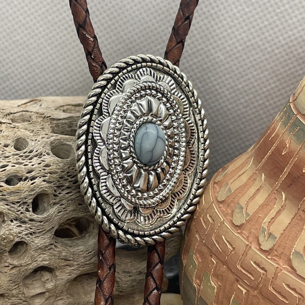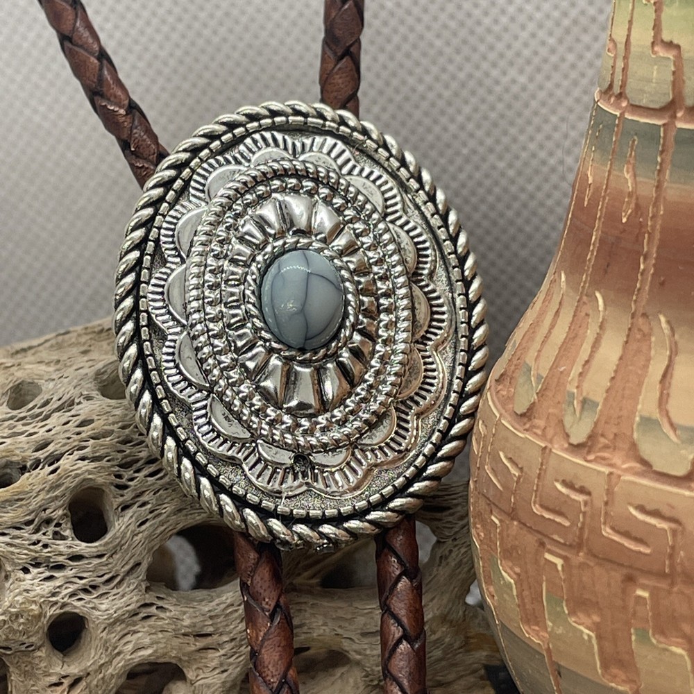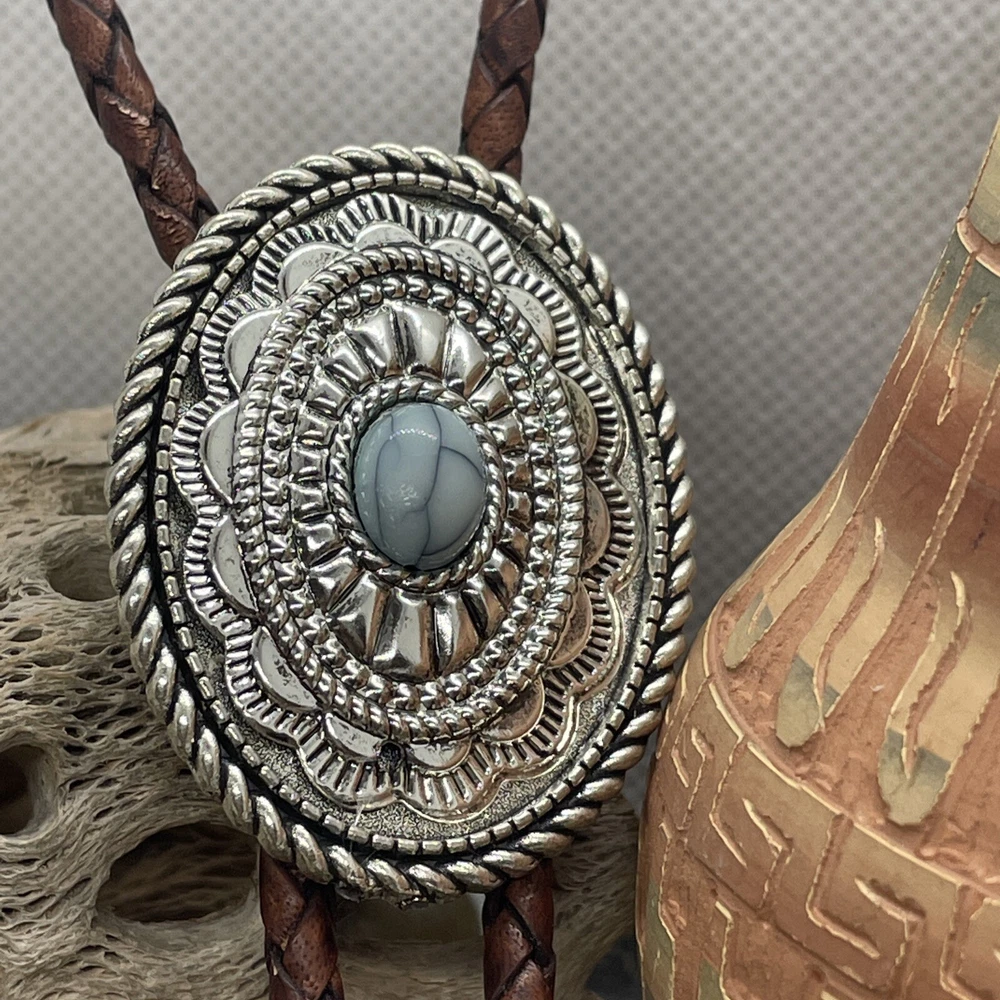 THANK YOU FOR STOPPING BY FANCY FOX BOUTIQUE Add a touch of Western style to your outfit with this beautiful handmade bolo tie necklace from Fancy Fox Boutique. The necklace features a unique pendant shape in the shape of a cross, with a diffused blue stone treatment and a silver tone metal finish. The bolo closure ensures a secure fit, while the 37 inch length makes it suitable for various occasions, including engagement, wedding, anniversary, graduation, and more. This necklace is perfect for anyone who loves Western and Southwestern jewelry, and it makes a great gift for Father's Day, Mother's Day, Christmas, birthdays, and more. The mixed material and ethnic origin of the necklace add to its charm, while the absence of a tribal affiliation makes it suitable for anyone. Get this stunning necklace today and add a touch of elegance to your outfit! SEE OUR STORE FOR MANY MANY DIFFERENT TYPES OF GIFTS WE ALSO CARRY BOLO TIES CAMEO JEWELRY WESTERN JEWELRY WESTERN WEAR ANTIQUES PRECIOUS MOMENTS VINTAGE FISHING LURES VINTAGE HARLEY PARTS VINTAGE MOTORCYCLE PARTS MEMOROBILIA COLLECTIBLES VINTAGE HOT WHEELS MONEY CLIPS TURQUOISE JEWELRY HANDMADE JEWELRY Always happy to combine shipping We start some auctions out each week - check back often to snag a bargain or stock up on gifts