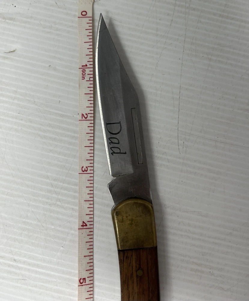 Get your hands on this beautiful Winchester pocket knife that features a 7.75" clip point blade made of stainless steel. The handle is made of brass and wood and has the word "Dad" engraved on it, making it a perfect gift for your father or any knife collector. This manual opening knife has a lockback mechanism and is suitable for both right and left-handed users. The brown color of the handle adds to its rustic charm. The Winchester Classic pocket knife is an original, factory-manufactured item that comes with a single blade and is an excellent addition to your collection. Fast safe ship This is a used item so there may be small imperfections and or blemishes. Please refer to the images provided as these are the most important part of the description. Photos are of the actual item being sold We appreciate you and thank you for checking out our listing. Be sure to check out all the other listings we have here at eBay! •STRIVING FOR 5 ⭐️⭐️⭐️⭐️⭐️ ••••I do my best to describe all my items correctly and completely, if you have any questions please do not hesitate to message me. ⭐️ Offers are always welcome and check out my other listings for a wide variety of items •••••Positive feedback is very important to me, I want you to be happy with your purchase! If you have a question or concern about your item, please contact me before leaving Feedback, and I'll do what I can to make it right. You’re satisfaction is my number one priority 🌟 Thank you for supporting our small business! This is a used item so there may be small imperfections and or blemishes. Please refer to the images provided as these are the most important part of the description. Photos are of the actual item being sold We appreciate you and thank you for checking out our listing. “International buyers - please note: Import duties, taxes, and charges aren't included in the item price or postage cost. These charges are the buyer's responsibility. "Please check with your country's customs office to determine what these additional costs will be, prior to bidding or buying. Best Tony and Felicia Bin 6