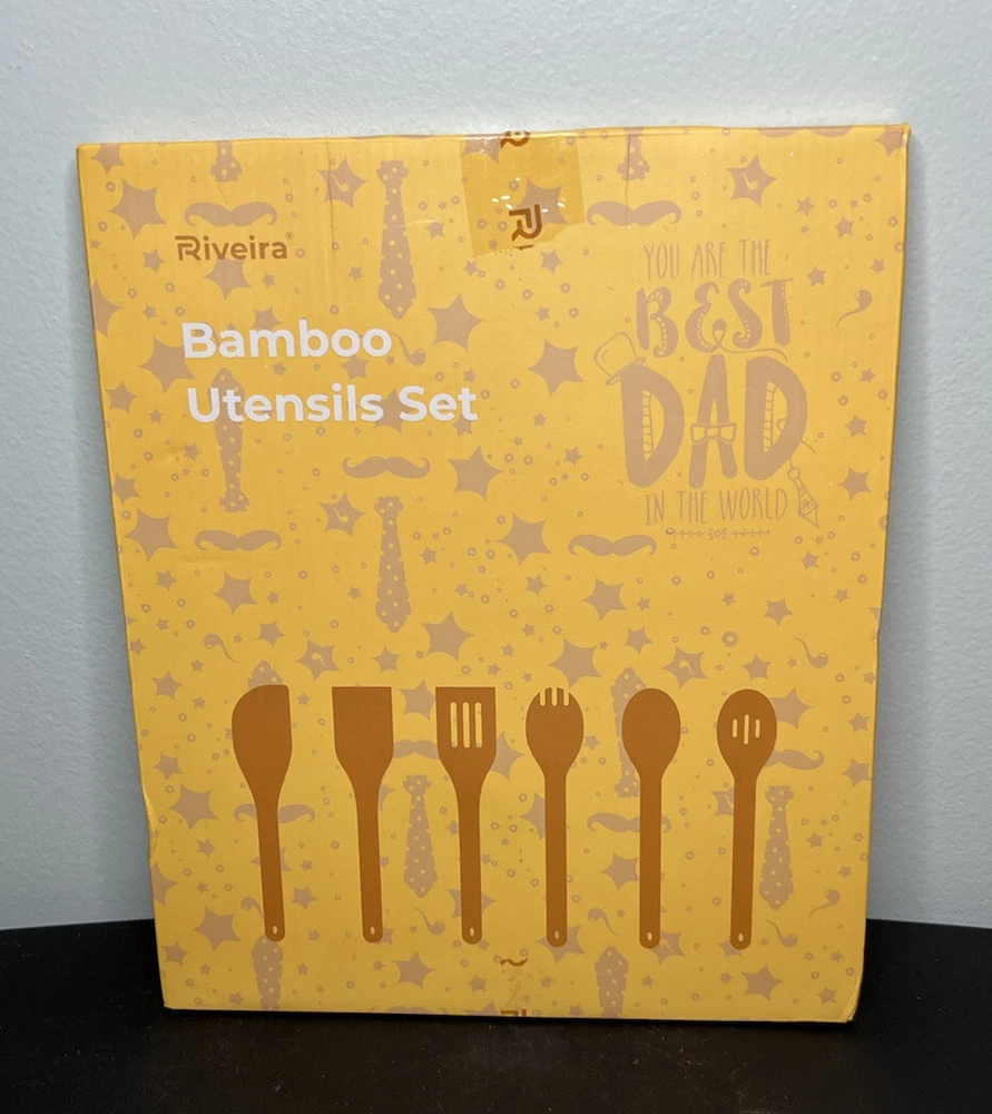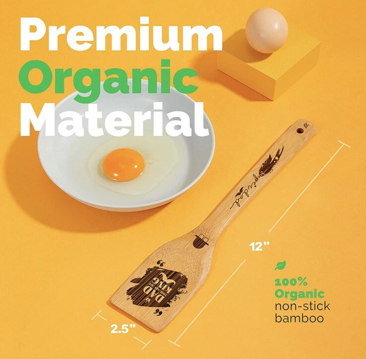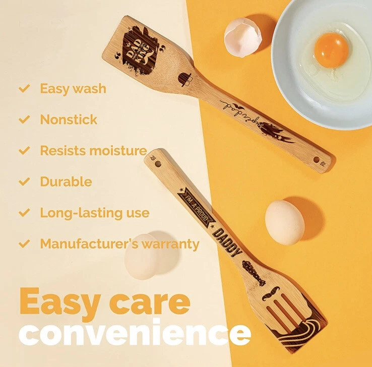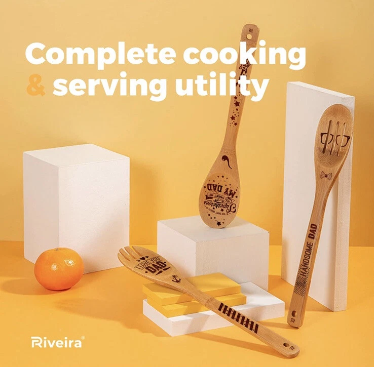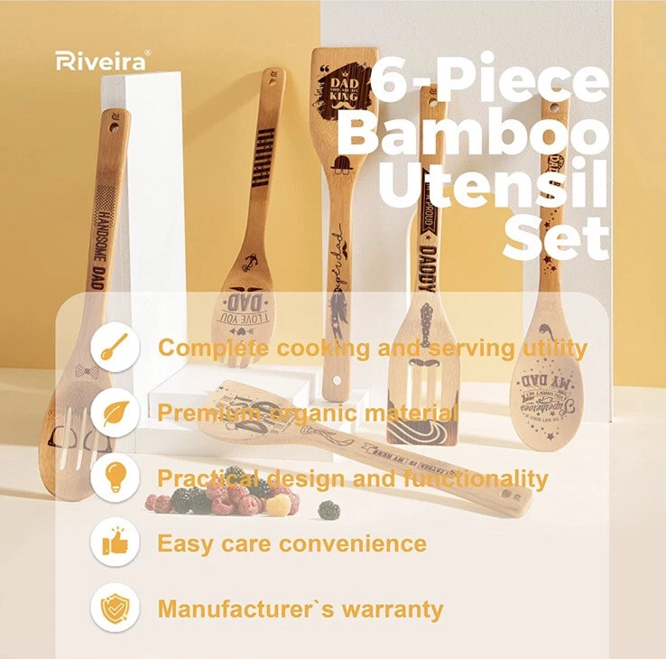 Fathers Day Wooden Bamboo Cooking Spoon Set Dad Kitchen Gift 6 Customized Pieces.