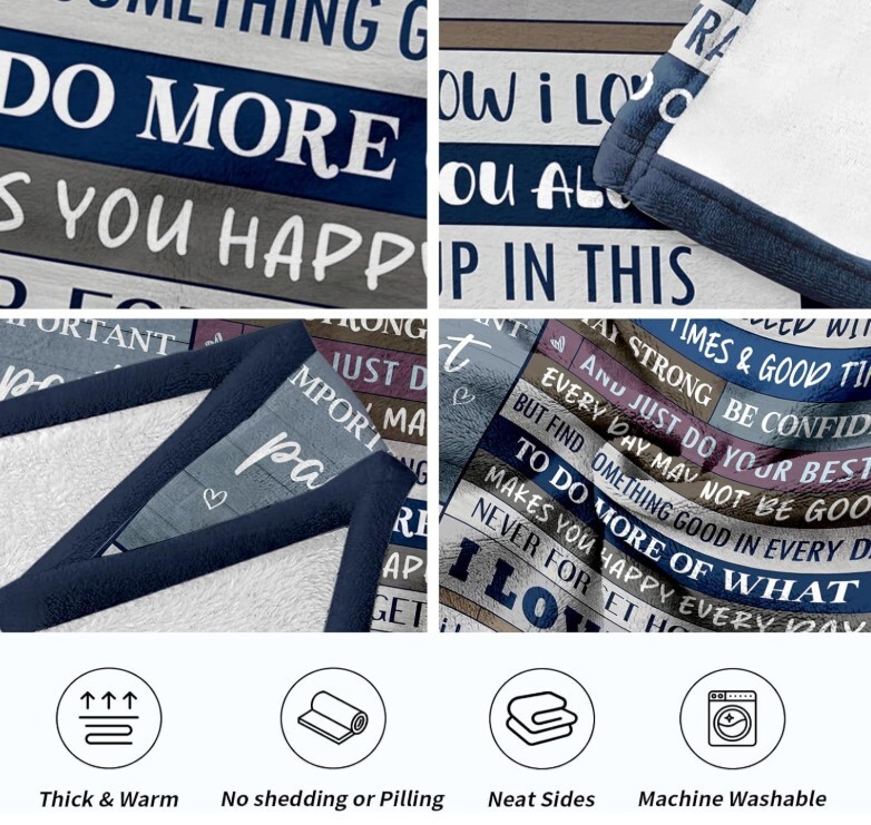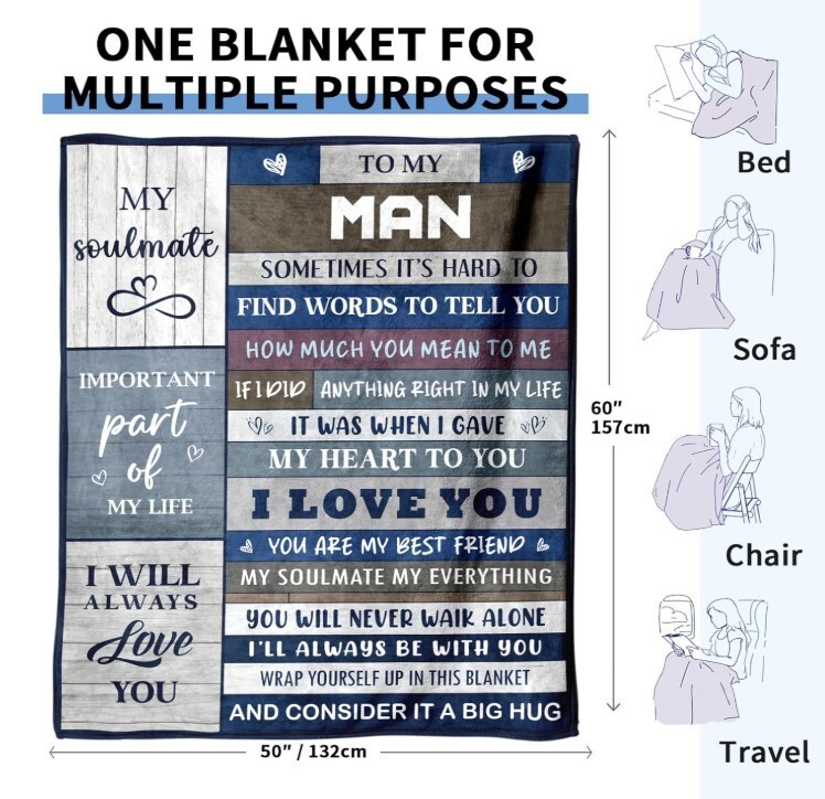 About this item: - Makes A Great Gift for Man: If you want to tell him how much you love and appreciate him, buy our blanket for him! No matter how far away you are, the blanket will hug your boyfriend/husband and keep him company. It is very suitable as a gift for him, warming him every day. - Suitable for All Occasions: Our 50 x 60 inches mens blanket is suitable for any occasion, such as Birthday, Valentines Day, Fathers Day, Thanksgiving Day and Christmas gifts for men, best ever gift for boyfriend/husband/fiance. - Blanket for Multiple Purposes: Our cosy blankets can be used on the bed, in the office, on the sofa, and during travel. It can be as sleeping blankets, air-conditioning blanket, sofa blanket, nap blankets, car back seat blankets, travel blankets, picnic blankets. No more cold toes or elbows with this throw blanket, suitable for all seasons. - Soft & Warm: Our blankets are made from soft flannel fabric and are all machine washable. It is thick & warm, no shedding or pilling, durable and neat sides. Since our blankets are vacuum compressed, it is normal for the blankets to be wrinkled after transport. But don't worry, the wrinkles will be smoothed out naturally after washing with water. - Happiness Purchase: We sincerely hope that this special gift will make your man smile. Should any uncertainty arise, our dedicated customer support team is ready to provide assistance, ensuring your gift-giving experience is as delightful as the sentiments behind it.