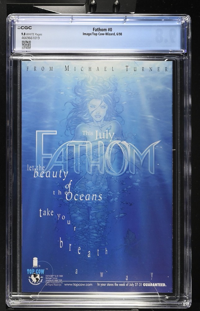 Welcome comic book community to the Destroyer of Worlds Comics store and our listing for Fathom 0 CGC 9.8 We are a small shop and our focus is to bring the best buying experience to our customers. Destroyer of Worlds Comics is an authorized CGC Dealer which grants us access to the CGC database for all graded book details which are included in every listing along with the hi resolution scans taken by CGC. We know that buying comics online can be stressful so we proactively eliminate the most common sources of stress by packing our comics professionally using BCW Graded Comic Bags and then placing them into sturdy 200 lb test boxes to withstand any mishandling while in transit with the carrier. When we receive an order it becomes top priority and your order is immediately pulled from inventory and packaged properly to arrive in your hands as quickly as possible. Our goal is for you to not worry about your order arriving late or guessing when it will be shipped. When you buy from our store you will also receive hassle free 30 day returns and we will cover the shipping cost back to us if you decide to make a return. We hope our commitment to protecting comics and servicing our customers provides a trustworthy and pleasant experience and thank you for considering us. The images in the listing are the actual item you will receive after purchasing. If you have any questions prior to making a decision please reach out and we will answer promptly. We are located in southern Florida not far from CGC and add new listings regularly so please take a look at our other listings if you are looking for CGC graded books and favorite us as a seller if you enjoyed buying from us. CGC Certification Info Title: Fathom Issue: 0 Grading Company: CGC Grade: 9.8 CGC Cert #: 4669661019 Page Quality: WHITE Issue Date: 6/98 Issue Year: 1998 Publisher: Image/Top Cow-Wizard Grade Category: Modern Total Graded By CGC: In 9.8: 17 Grader Notes: None CGC Census Report CGC Database Query Time: 2025-12-17 16:39:39 Mint 10.0: 0 Mint 9.9: 0 Near Mint/Mint 9.8: 17 Near Mint+ 9.6: 24 Near Mint 9.4: 20 Near Mint- 9.2: 15 Very Fine/Near Mint 9.0: 3 Very Fine+ 8.5: 2 Very Fine 8.0: 2 Very Fine- 7.5: 1 Fine/Very Fine 7.0: 0 Fine+ 6.5: 0 Fine 6.0: 0 Fine- 5.5: 0 Very Good/Fine 5.0: 0 Very Good+ 4.5: 0 Very Good 4.0: 0 Very Good- 3.5: 0 Good/Very Good 3.0: 0 Good+ 2.5: 0 Good 2.0: 0 Good- 1.8: 0 Fair/Good 1.5: 0 Fair 1.0: 0 Poor 0.5: 0 Case Condition We understand every collector has a unique set of standards when it comes to condition of the case and we often receive entire submissions with defects therefore we make every effort to note those conditions in the listing since they are often not visible in the scanned images. Nearly every case we receive from CGC has at least one of the following defects: grade on label not centered, label mounted crooked, newton rings, scuffing, scratches, case stress from the sealing process or inner well movement. To keep you informed before making a purchase decision we note major defects like cracks, newton rings, heavy scratches, and major scuffing in the listing but do not list the minor ones. If there are any flaws you dislike in particular please message us and we would be happy to review any of our listings and get back with you with every flaw we can find on the case. In the event the case arrives and is not to your satisfaction please reach out and we will offer to replace it if we have one available in better condition or a return can be opened at no cost within 30 days to receive a full refund. Pricing All fixed price listings are firm. We price our books at fair value according to recently sold listings but do realize prices fluctuate frequently when auctions are involved so we sometimes create auction listings for a chance at reduced prices for those who enjoy the thrill of the hunt. We also regularly run promotional coupon codes for volume discounts on orders of multiple fixed price listings so be sure to add listings to your watchlist and check back frequently. Shipping Policy Destroyer of Worlds Comics typically ships your items same day or next business day after payment is made. CGC graded comics are wrapped both vertically and horizontally in 5/16 inch bubble wrap and then placed into a 200 lb test corrugated box for protection. Ungraded comics are shipped in Gemini Comic Mailers. Combined shipping is offered for both domestic and international buyers. Please note for international orders any additional import fees duties taxes or customs charges are the sole responsibility of the buyer. These charges are determined by your country's customs office and we unfortunately have no influence over the amount charged or the duration of the assessment process due to the customs forms being automated. Please be aware that customs procedures and policies vary from country to country. If you have any concerns or questions regarding import fees duties or taxes we recommend contacting your local customs office before making a purchase. Return Policy Free returns available on all CGC graded books within 30 days of purchase.