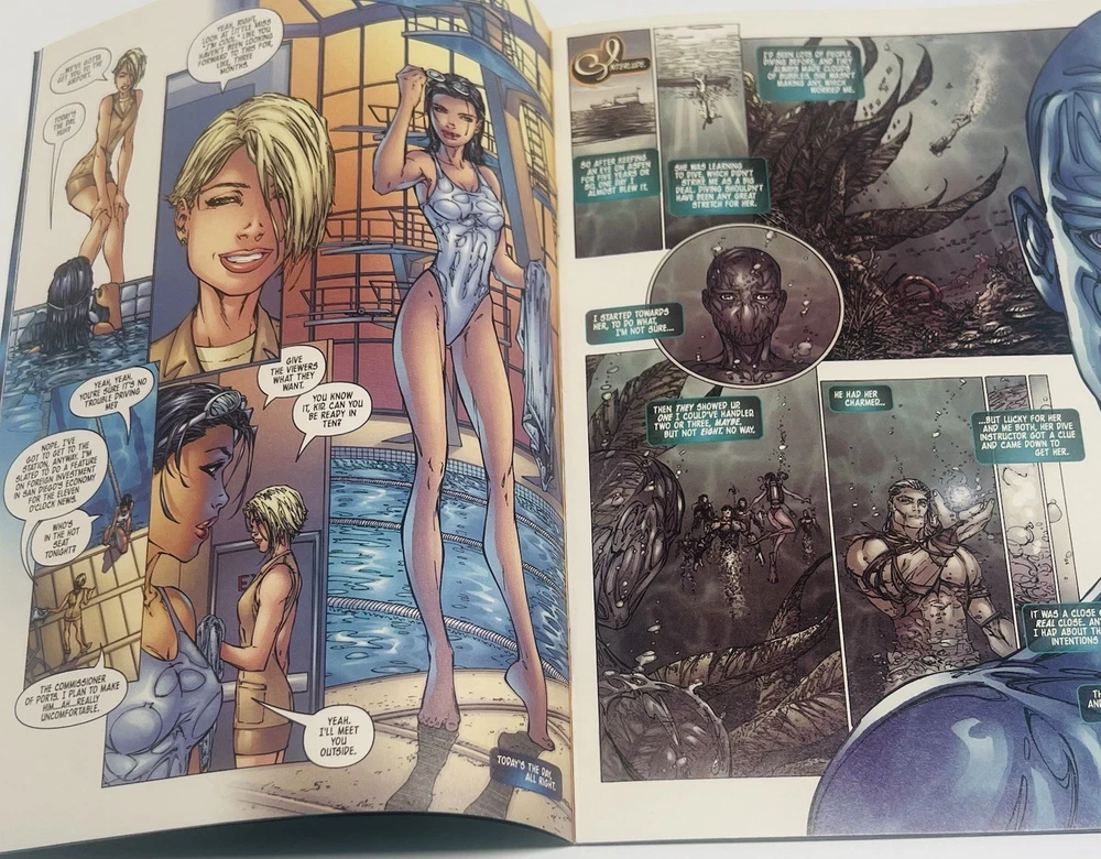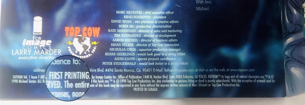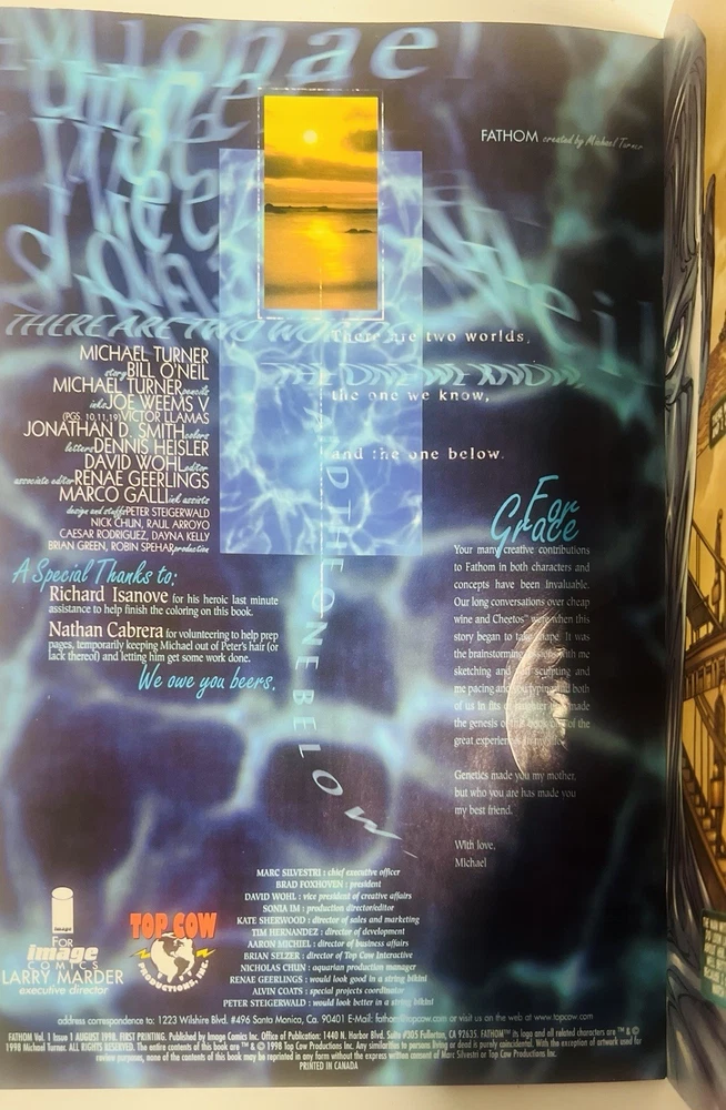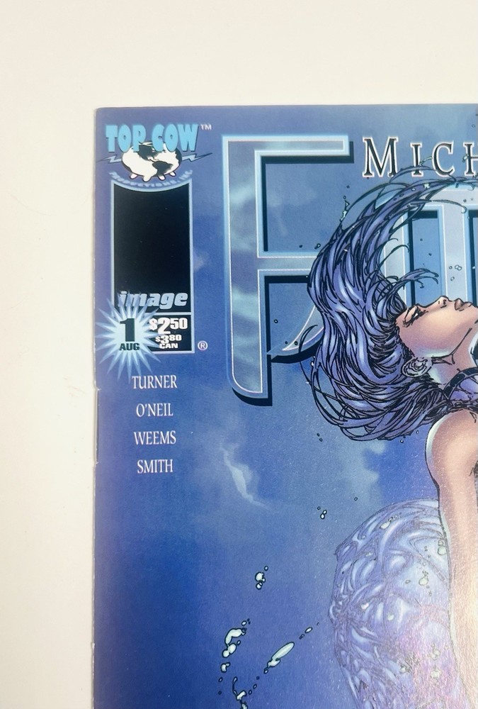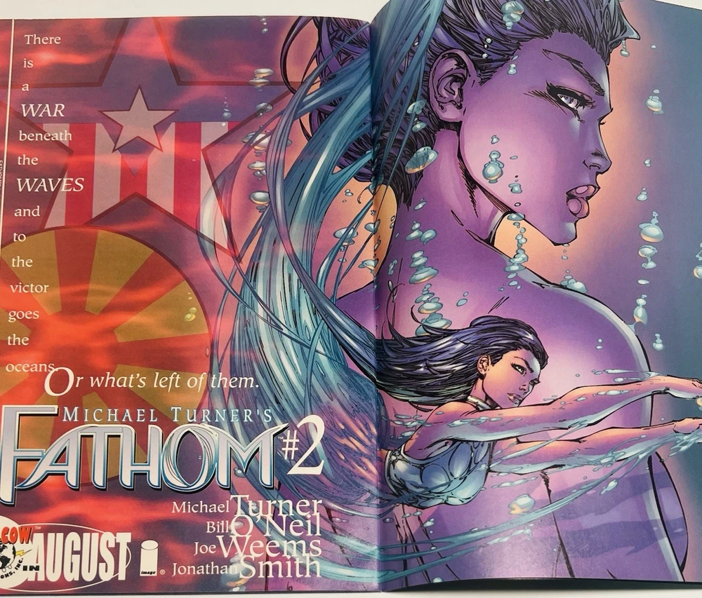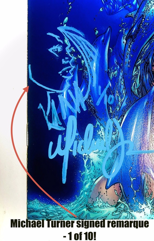 The product is a highly collectible and sought-after Fathom #1 comic book featuring artwork by Michael Turner and Marc Silvestri. This B variant cover is signed by both Michael Turner and Marc Silvestri, with a very nice remarque by Turner that’s been hand numbered 1/10, NH adding a unique and valuable element to this key issue. This first printing single issue is from the Top Cow universe and published by Image/Top Cow in 1998 during the Modern Age era of US Comics. With features like a signed remarque by Michael Turner and being boarded, this rare comic is a must-have for fans and collectors alike. Rare opportunity to own a signed and remarqued 1st issue / 1st printingmof Fathom by Michael Turner. Marc Silvestri (who also signed this issue, and is a phenomenal artist in his own right) discovered Turner at a convention in the early 90s, and after witnessing Turner’s abilities, he hired Michael on the spot. Turner was a prodigy, and an amazing artist that influenced a generation of up and coming artists during the 90s and 2000s. His work on Fathom, Superman, Wolverine: Origins, Ultimate Wolverine, and Witchblade are timeless, and remain as some of the best selling and well respected comic runs of the modern era. He was truly one of the nicest people you would ever meet. He was dedicated to his craft and was known for staying hours sometimes past his scheduled signings to make sure everyone was happy, and he even did this while he was going through immense pain while battling a rare form of bone cancer. Sadly, Michael Turner lost his hard fought battle with cancer and passed away on June 27, 2008, at just 37 years of age. So these signed Turner’s are very limited and highly regarded. Don’t let this one pass you by!!