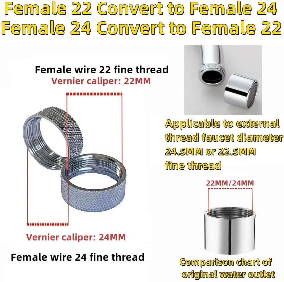 🔧【Wide application】Faucet adapter is suitable for faucets and buffer aerators with removable sink aerators. Connect the faucet hose to the male or female faucet. The sink faucet sprayer attachment also attaches a male or female bubbler to a male or female faucet. 🔧【Scenario】faucet to hose adapter fits most common sinks to connect garden hose adapter, sink sprayer, water aerator, garden hose, water filter, sprayer, portable dishwasher faucet adapter, shower adapter for tub faucet, through Standard hose for faucet diverters, in RVs, buffer faucets, standard faucets and other faucet accessories. 🔧【Corresponding size】Sink adapter for faucet size:female 55/64"-27T transform female 15/16"-27T 🔧【High Quality Brass Adapter】Sink adapter for faucet is made of solid brass, explosion proof fastening, practical and easy to be compatible, faucet adapter kit includes custom fit gasket. The threads on the female to male faucet adapter will not fray, leak, pop, peel or rust. 🔧【Save Money】Don't waste money buying a new faucet or wasting time buying the wrong sink to hose faucet adapter from the hardware store.