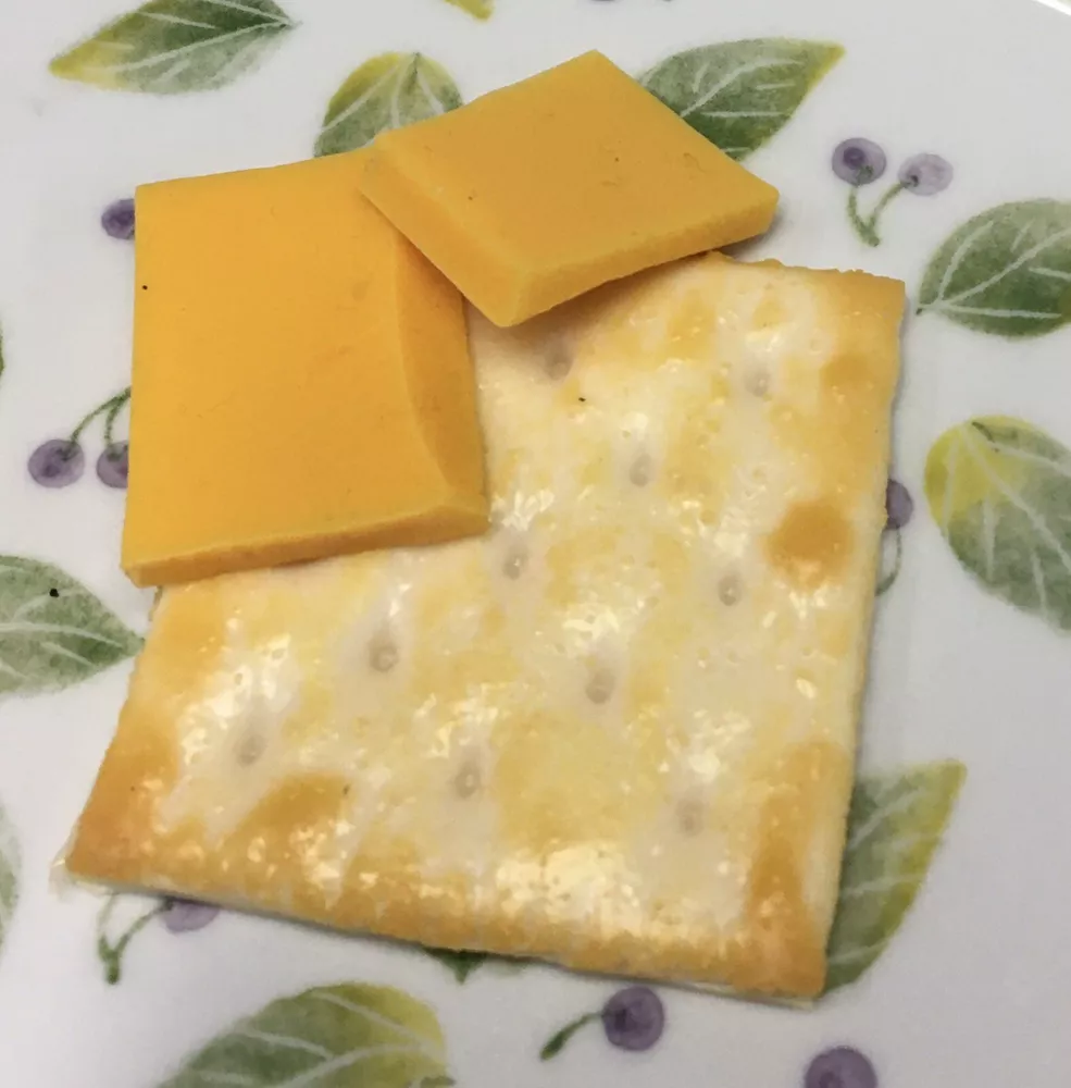FAKE FOOD - 2 slices of Cheese & 1 Cracker Made of a rubbery silicone type material Please see ALL pics for SIZE and DETAILS Plate is for display only and is not included ATTENTION: Home Stagers, Realtors, Photographers, Decorators Uses: Add a touch of realism to your next open house or home staging, a model home, restaurant, photography shoot, winery, school play and even your own home. Did you know ??? • Staging makes your house look bigger, brighter, cleaner, warmer, more loving and, best of all, it makes home buyers want to buy it. • Homes that are professionally staged spend 50% less time on the market and sell for an average of 6.9% higher than homes not staged. EXCELLENT FOR HOME DECOR ~ DISPLAY ~ RESTAURANT ~ FOOD EXPO ~ PROPS ~ OPEN HOUSE