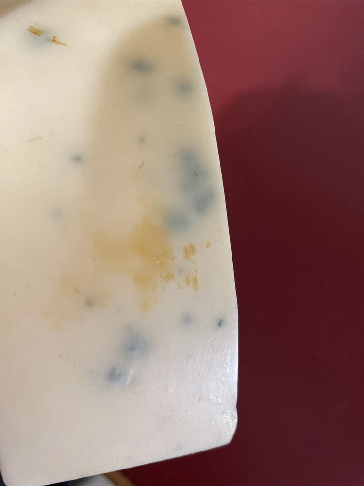 Faux Food Blue cheese Wedge Deli Display Stage Movie PROP Iwasaki This is about 4 3/4" and weighs 8 oz I believe this is made by Iwasaki Images of America - it retails on their site for $52.84 Missing is covering on the bottom. Please look at photos carefully