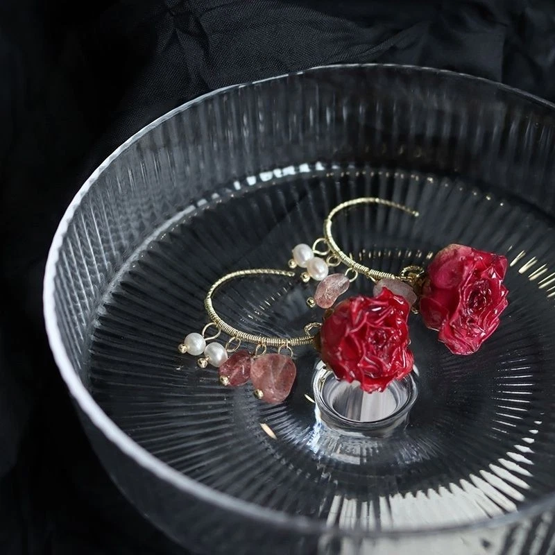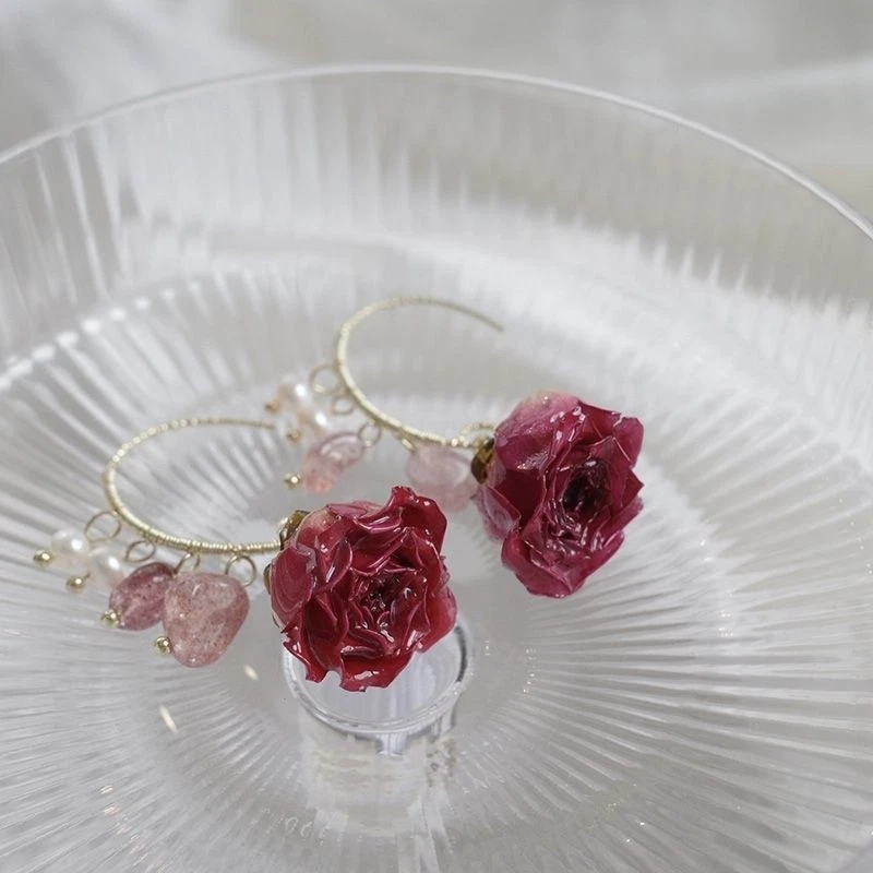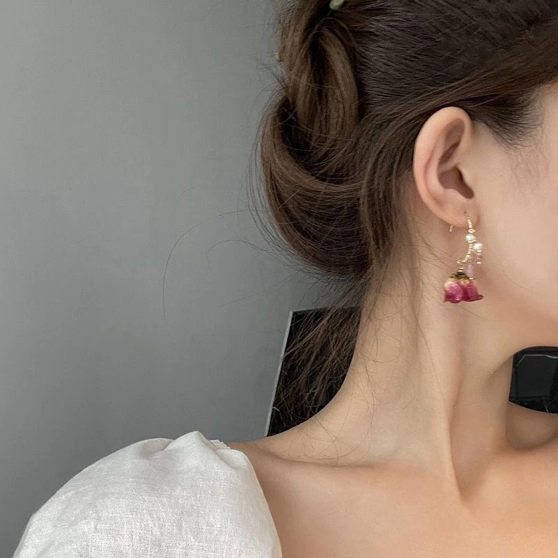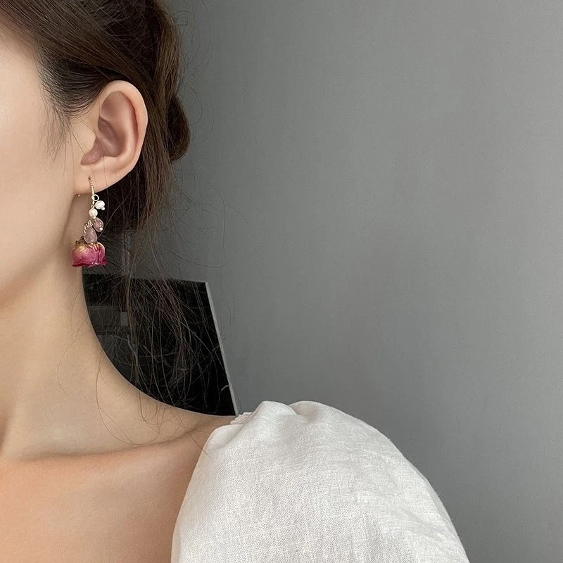 Handcrafted Ceramic Blue White Teardrop Dangle Earrings Gold Hooks