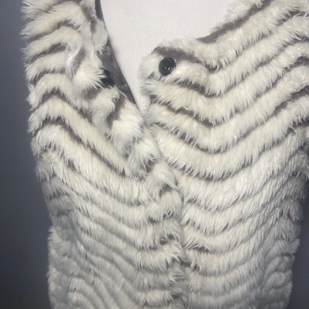Faux Fur Striped Button Front Vest SZ Medium By Sanctuary Retro Punk Boho In good Preowned condition