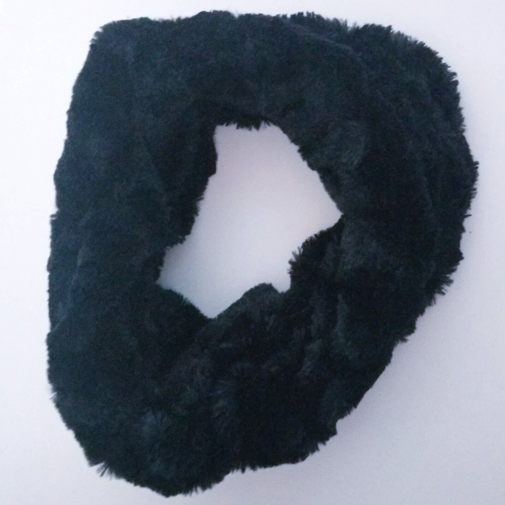 Faux Fur Vintage SNOOD Eternity Ring Neck Warmer Black Wrap 32" long so soft! 16" end to end because it is a true ring of faux fur 11" wide really nice condition, no holes tears stains smells, please see photos for further info