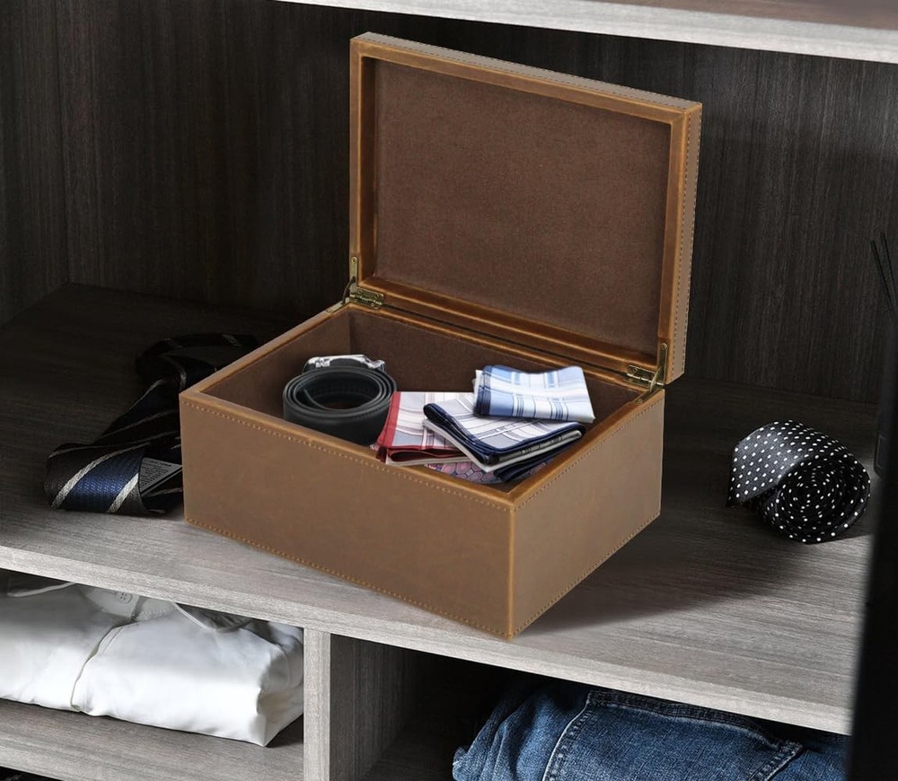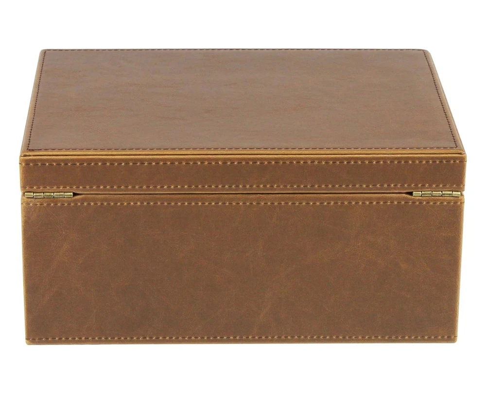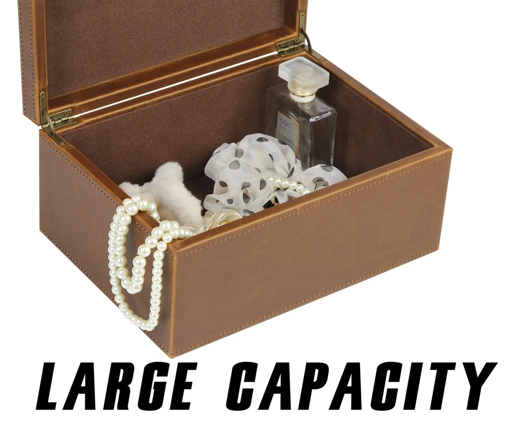 Number Of Boxes: 1 Material: Faux Leather Decorative Box Included Components: Decorative Box With Hinged Ld Style: Modern Capacity: 4.4 Unit Count: 1.0 Assembly Instructions: Already Assembled Material Feature: Durable, Easy To Clean, Resistant To Wear And Tear Type: Does not apply Storage Volume: 4.4 Brand: Does not apply Recommended Uses For Product: Accessories, For Cosmetic & Make-Up, Storage Weight: 3.35 Pounds Closure Type: Flip Top Opening Mechanism: Hinge Color: Brown UPC: Does not apply Model Number: Decorative Box Package Dimensions LxWxH: 12.4x8.98x5.87 Inches gtin13: Does not apply Model Name: Decorative Box Item Shape: Rectangular