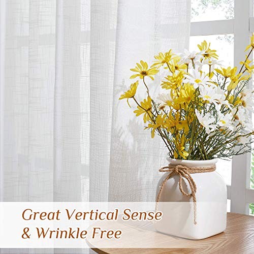 Faux Linen Cafe Curtains 42x48 Inch Rod Pocket Panel Pair White