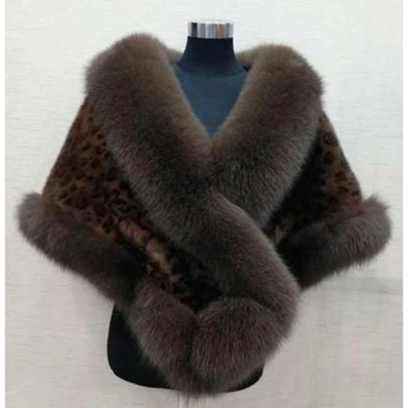 This faux mink and rabbit fur shawl is so chic and cozy! The leopard print adds a touch of wild elegance, making it the perfect statement piece for any outfit.