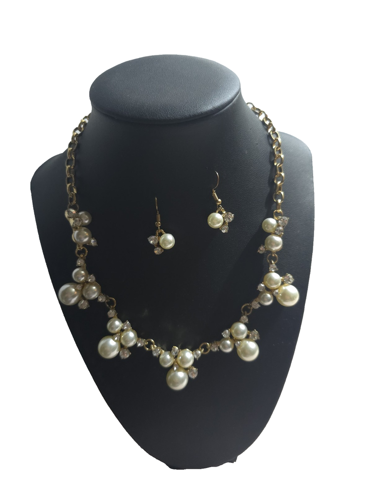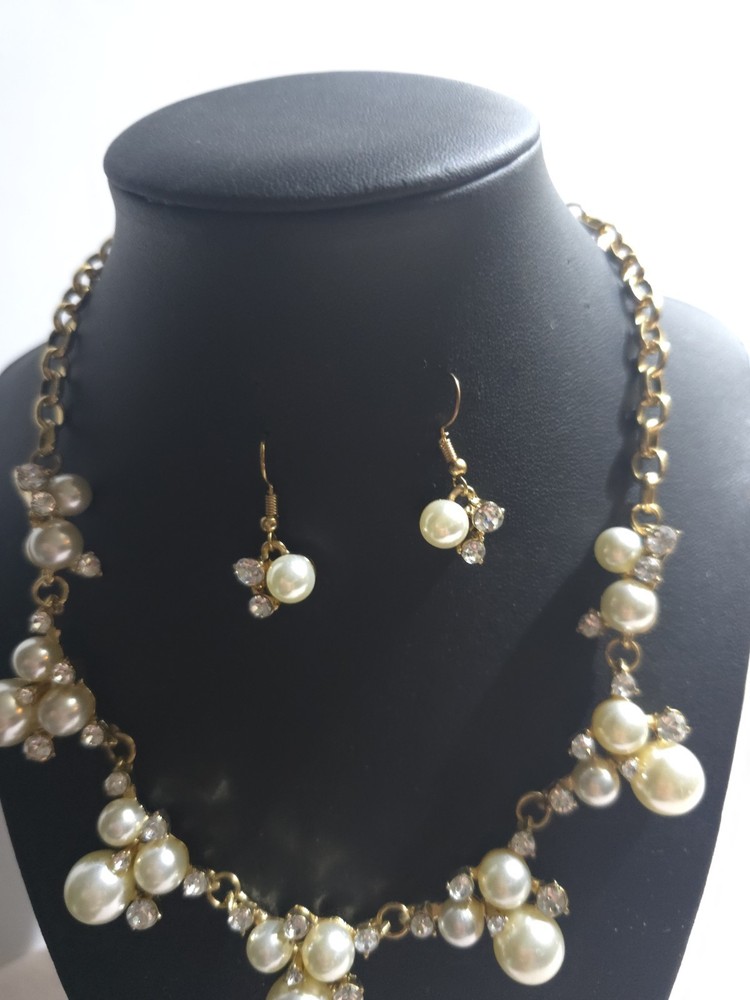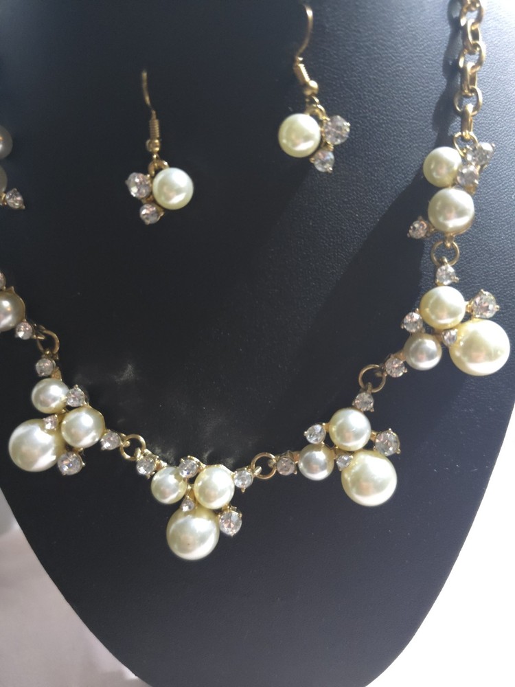 The Faux Pearl Rhinestone Statement Bib Necklace and Earring Set by Paparazzi is a stunning jewelry set perfect for special occasions like weddings and birthdays. The gold color and cream faux pearls add an elegant touch, while the rhinestones provide a touch of sparkle. This set includes earrings and a necklace, making it a versatile and stylish addition to any outfit. Signed by the brand, this statement piece is sure to make a statement at your next event.