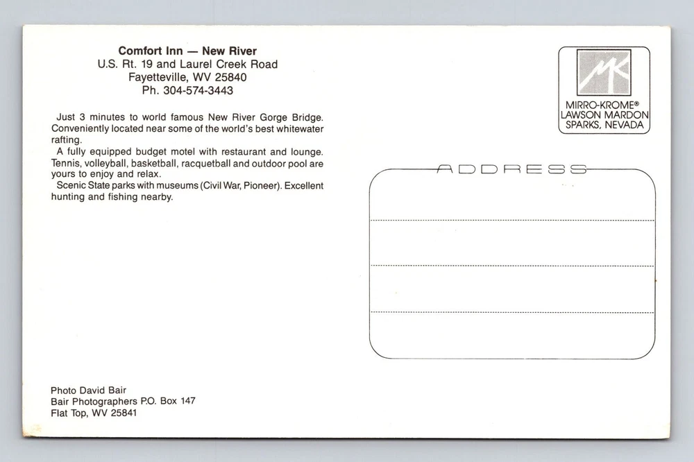 Fayetteville WV-West Virginia Comfort Inn New River Advertising Vintage Postcard