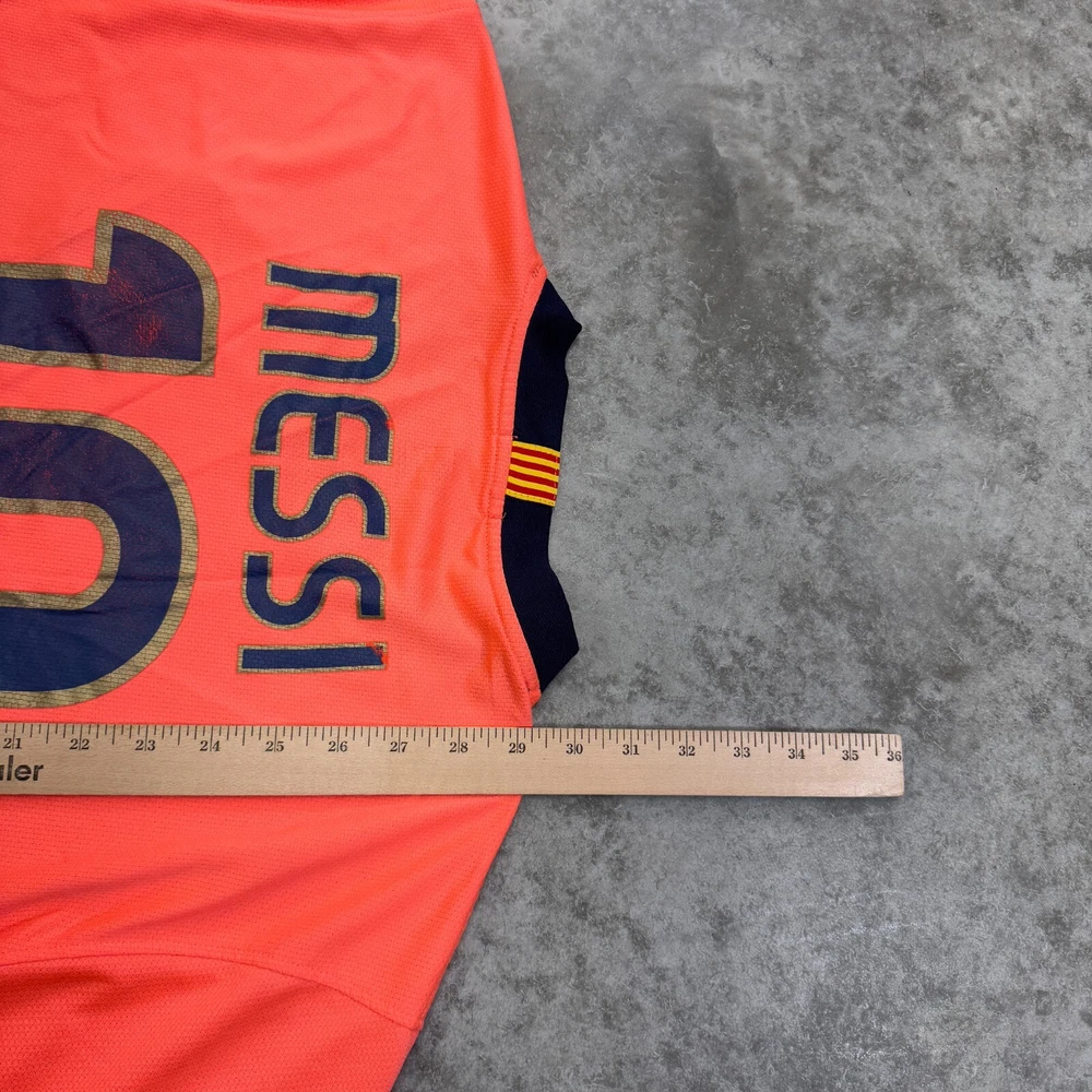Size: L Seller Notes: “fair” Team: FC Barcelona Sport: Soccer Gender: Men Officially Licensed: Yes Product: Jersey Player: Lionel Messi Brand: Nike Country/Region of Manufacture: Thailand Event/Tournament: La Liga Color: Pink