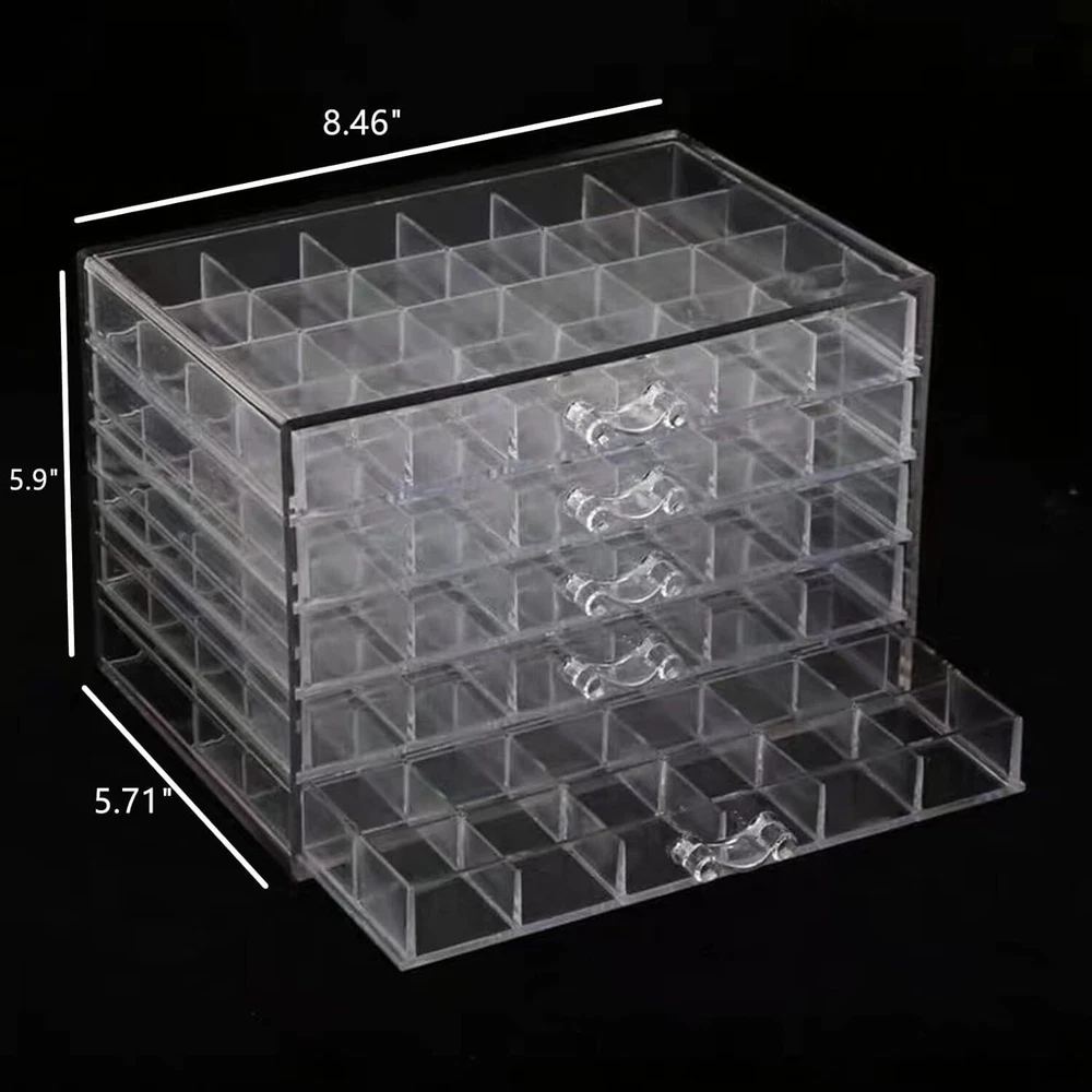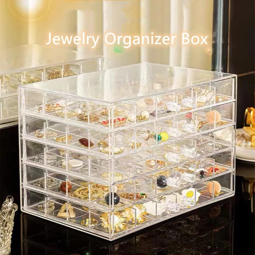Feadily Acrylic Jewelry Organizer Box, Drawer 1PCS, Clear Product Details Color: Clear Brand: Feadily Material: Plastic Style: Modern Special Feature: Jewelry Organizer Recommended Uses For Product: Necklace, Ring, Earring Product Dimensions: 6.3"D x 9.45"W x 7.28"H Target Audience: Women Shape: Rectangular Occasion: Engagement, Mother's Day, Wedding, Birthday Finish Type: Unfinished Closure Type: Drawstring Number of Drawers: 5 Item Weight: 1 Pounds Number of Compartments: 120 Jewelry Storage Type: Jewelry Box Number of Items: 1 Manufacturer: Feadily Part Number: FEAQG-JMP-22031901 Item Weight: 1 pounds Item model number: FEAQG-JMP-22031901 Size: 1PCS Finish: Unfinished Number Of Pieces: 1 Special Features: Jewelry Organizer Batteries Included?: No Batteries Required?: No Color: Clear Brand: Feadily Material: Plastic Style: Modern Special Feature: Jewelry Organizer Recommended Uses For Product: Necklace, Ring, Earring Product Dimensions: 6.3"D x 9.45"W x 7.28"H Target Audience: Women Shape: Rectangular Occasion: Engagement, Mother's Day, Wedding, Birthday Grid Design: 120 Grids can store most of your jewelry, perfect for storing different sizes of earrings, rings, beads and other small objects Size & Color: 8.46 inch x 5.71 inch x 5.90 inch, each compartments size 1.38 inch x 1.38 inch x 1.1 inch, Clear Sturdy and Durable: Made of durable clear acrylic, it is very durable and clear. Let you quickly find what you need with the clear Jewelry Organizer Box Removable Drawers: 5 drawers can pull out easily, Drawers operate smoothly Good Choice: An excellent addition on your dresser, especially suitable for birthday, festival, anniversary a good choice ·Grid Design: 120 Grids can store most of your jewelry, perfect for storing different sizes of earrings, rings, beads and other small objects ·Size & Color: 8.46 inch x 5.71 inch x 5.90 inch, each compartments size 1.38 inch x 1.38 inch x 1.1 inch, Clear ·Sturdy and Durable: Made of durable clear acrylic, it is very durable and clear. Let you quickly find what you need with the clear Jewelry Organizer Box ·Removable Drawers: 5 drawers can pull out easily, Drawers operate smoothly Good Choice: An excellent addition on your dresser, especially suitable for birthday, festival, anniversary a good choice