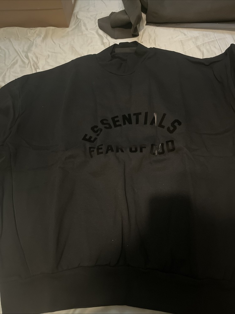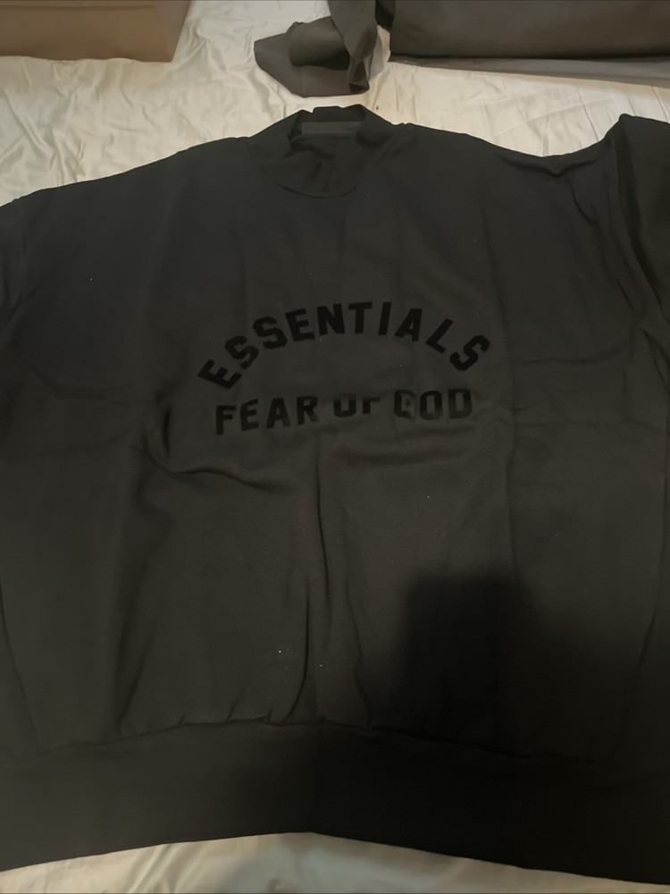 Elevate your wardrobe with the Fear of God Essentials Crewneck Sweatshirt. Crafted from a comfortable cotton blend and polyester, this sweatshirt features a solid black color and an oversized fit that's perfect for any season. The long sleeves and classic pullover style make it ideal for walking, running, and gym training. This sweatshirt is part of the Essentials product line and is available in size XL. It's perfect for men who want a relaxed fit and a heavyweight feel. The Fear of God brand is known for its high-quality products, and this sweatshirt is no exception. Add it to your collection today and experience the comfort and style it offers.