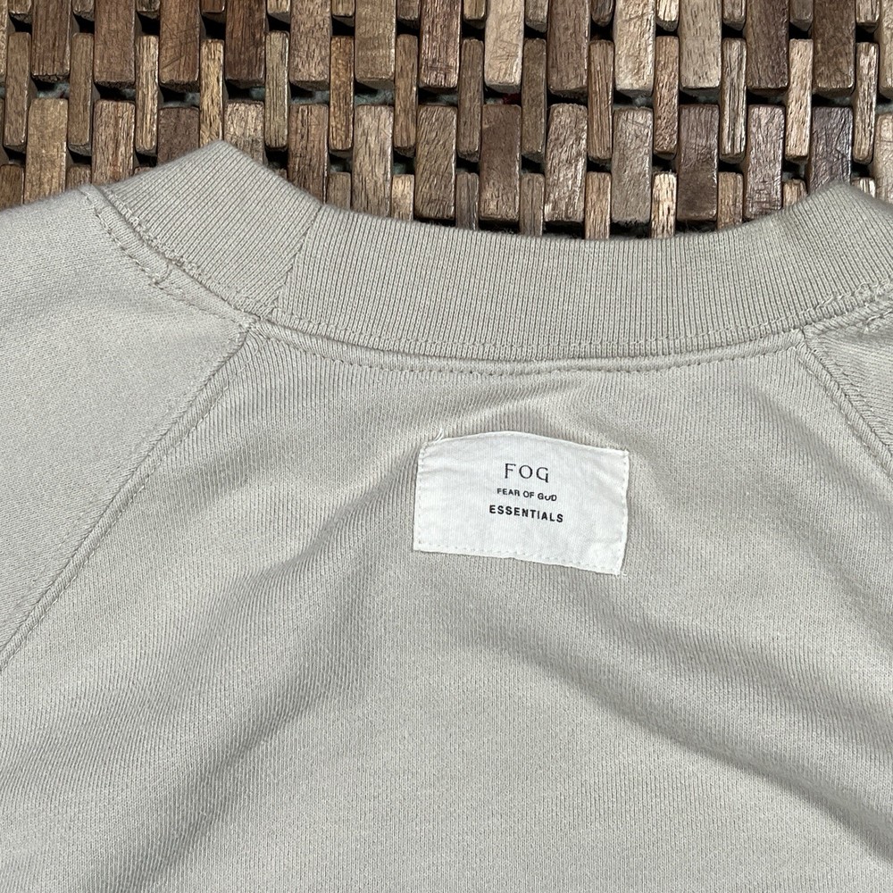 Elevate your casual style with this beige taupe Essentials Fear Of God Crewneck Sweatshirt. This earlier model sweatshirt is perfect for men who want to make a statement with their fashion. The pullover style and oversized fit make it comfortable to wear, while the heavyweight and breathable fabric make it suitable for all seasons. The sweatshirt features a solid pattern and is made of a combination of polyester and cotton, with a cotton fabric type that provides a soft and comfortable feel. The accent logo adds a touch of designer appeal, making it a must-have for any fashion-forward person. This sweatshirt is perfect for various sports and activities, including basketball, football, and gym training.