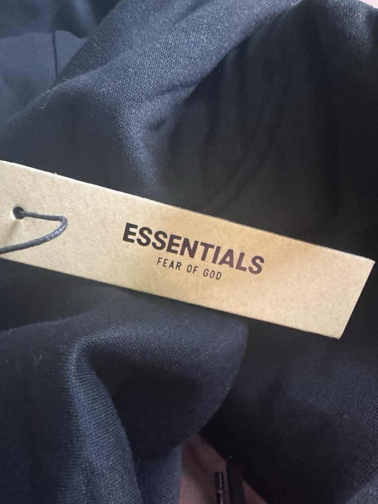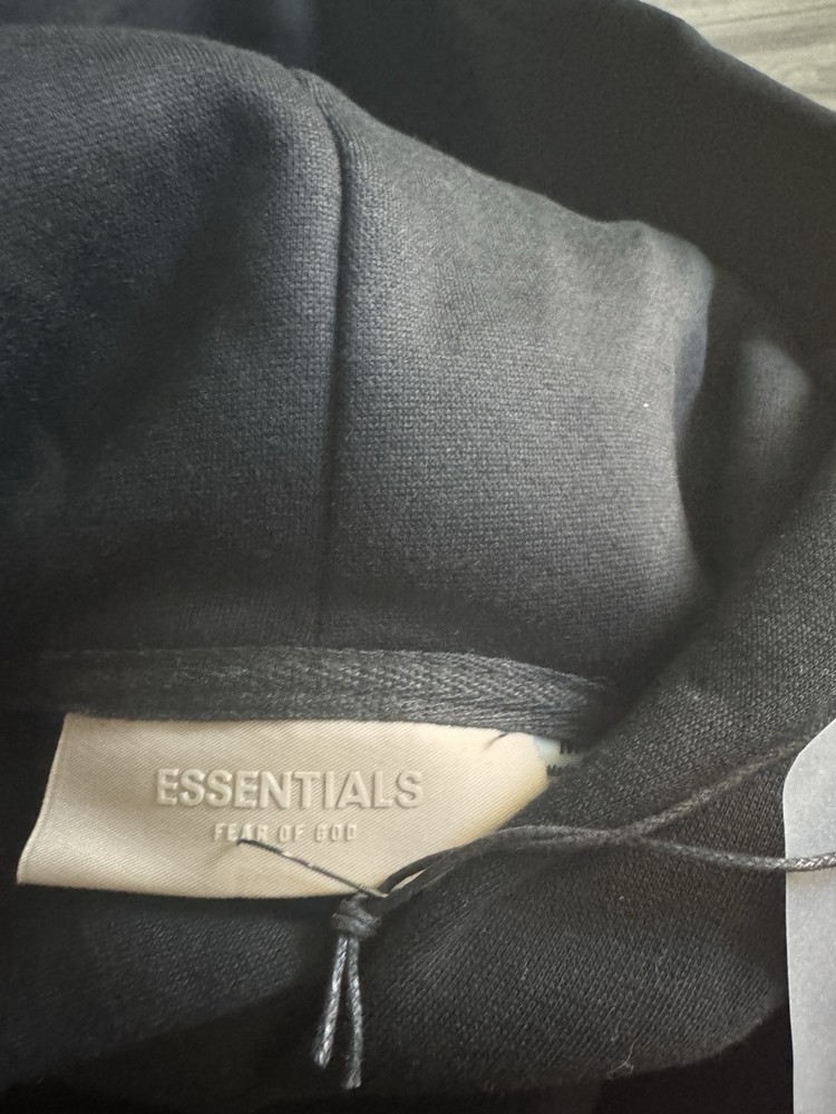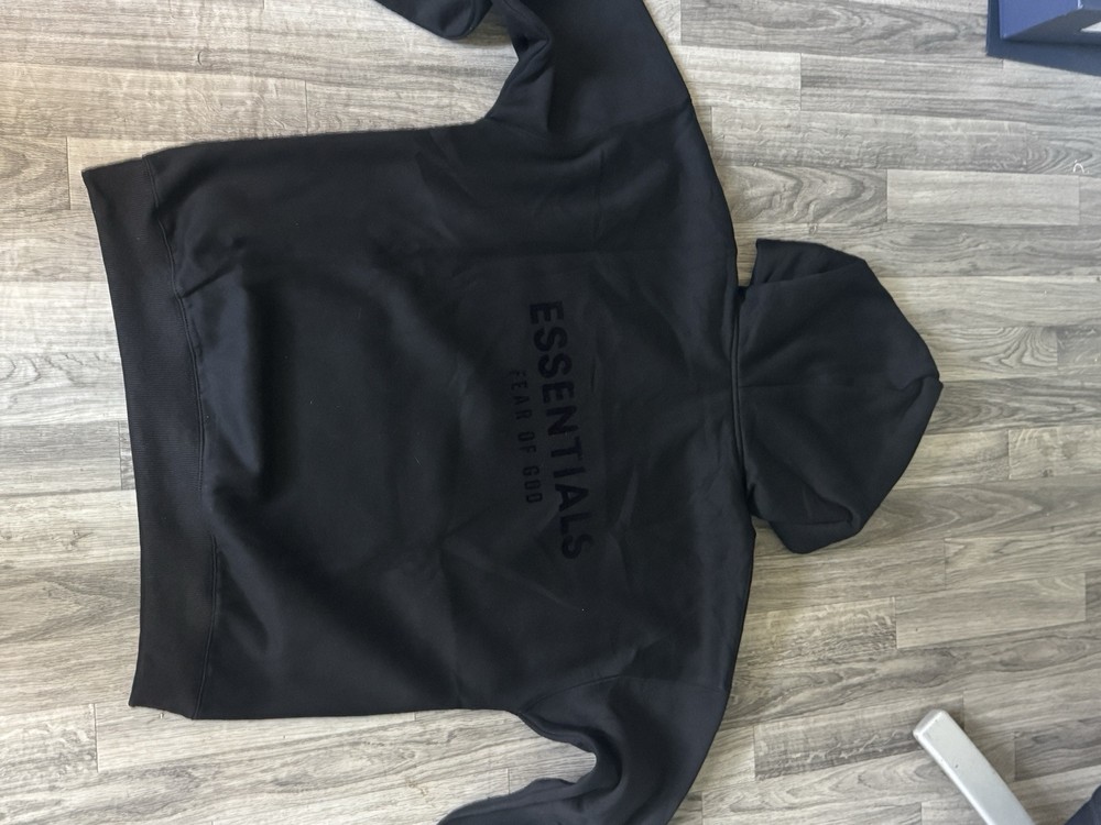 black ‘stretch limo’ Fear of Gods Essentials Hoodie. Size:M