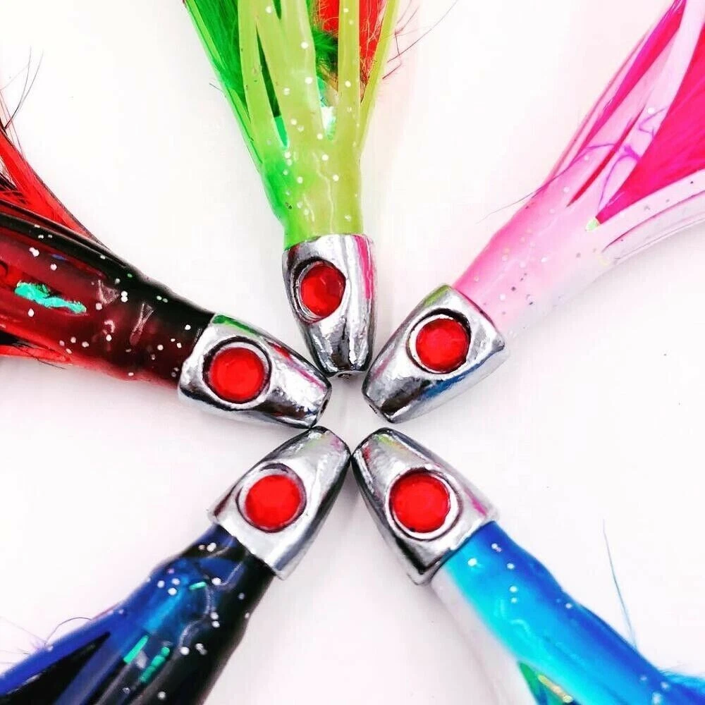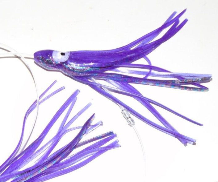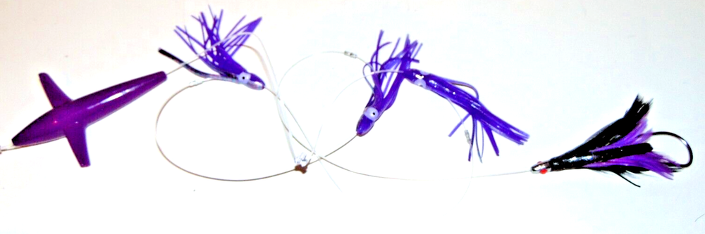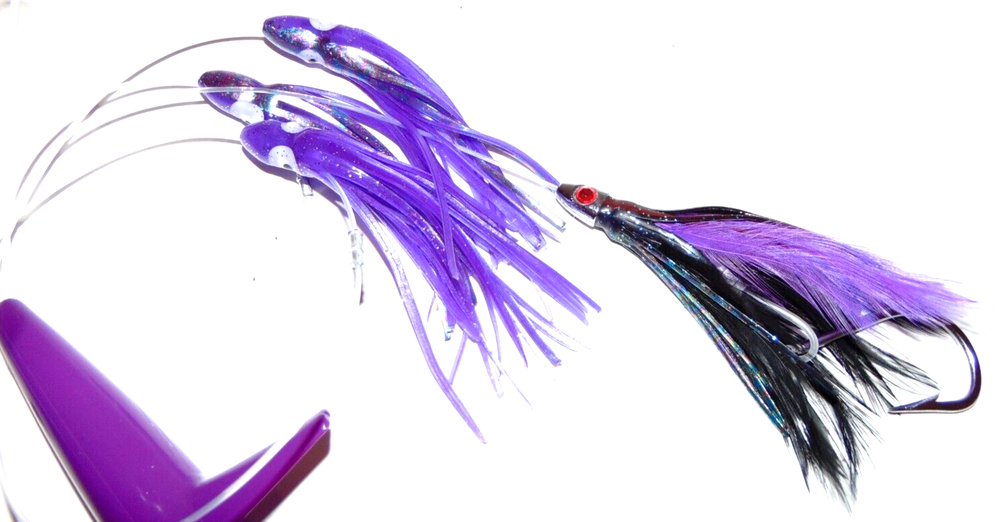 Feather Daisy Chain Purple and Black Rigged Feather Daisy Chain with Exciter Bird Exciter bird s plashing and fluttering on the surface can add activity to your spread Great Mahi, Tuna Lures Feathers have a huge success for attracting and catching large game fish such as Tuna, Mahi and others This style chain is used throughout the world for Mahi ,Mackeral and especially Yellowfin, Blackfin Tuna's Big Game Offshore Wahoo/Marlin/Dolphin/Dorado/Tuna/King Mackeral Lure Target Fish Species Albacore, Dorado, Wahoo, Swordfish, Bonito, Dolphinfish, Kingfish, Mackerel, Queenfish, Sailfish, Trevally, Yellowtail, Blackfin Tuna, Blue Mackerel, Frigate Tuna, Rainbow Runner, Skipjack Tuna, Longtail Tuna, Bigeye Tuna, Atlantic Bluefin Tuna, Southern Bluefin Tuna, Yellowfin Tuna, Samson Fish, Atlantic Sailfish, Dogtooth Tuna, Indo-Pacific Sailfish, Atlantic White Marlin, Black Marlin, Indo-Pacific Blue Marlin, Pacific Bluefin Tuna, Striped Marlin Game Fishing Locations Argentina, Australia, Brazil, Canada, Chile, China, France, Greece, India, Indonesia, Ireland, Israel, Italy, Japan, New Zealand, Phillipines, Portugal, South Africa, Spain, United Kingdom, United States, Saudi Arabia, Germany, Netherlands, Norway, Russian Federation, Sweden Other brands we sell or have sold C&H,Billy Baits,Bob Schneider,Yozuri, Joe Yee,Z-Man,Luhr Jensen, Black Bart, Tormentor, Ilander,Williamson,Gypsy Lure,Scent Blazer,Mustad Hooks and Ande Line for Rigged Baits and more Other brands we sell or have sold C&H,Billy Baits,Bob Schneider,Yozuri, Joe Yee,Z-Man,Luhr Jensen, Black Bart, Tormentor, Ilander,Williamson,Gypsy Lure,Scent Blazer,Mustad Hooks and Ande Line for Rigged Baits and more