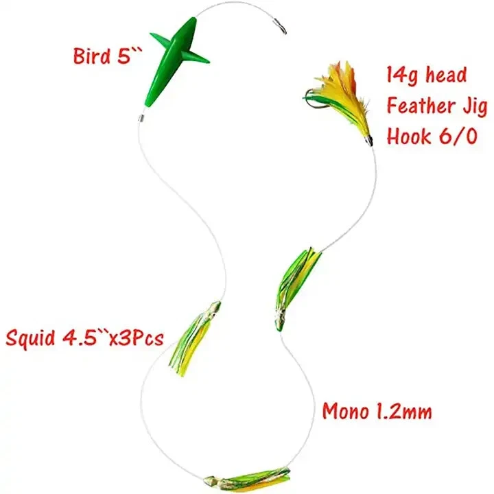 Professional seller. 1st class. Item just as described. Very happy with product and price. High quality ballyhoo rig.. Packaged very nicely. Thank you!!!!