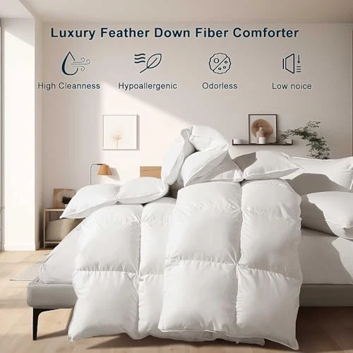 Menu 1. We require immediate payment. 2. We currently accept payment via eBay managed payments only. 3. Once payment is cleared, we will dispatch your shipment within 1-3 business days. Please refer to the "Shipping" tab for more information regarding shipping speed to your destination. Feather Down Fiber Comforter Full Size Duvet Insert, Ultra Soft Luxury All Season White 100% Cotton Hotel Collection Bed Comforter with 8 Corner Tabs, Box Stitched Fluffy Cozy Medium Warmth 82 x 86 Product description ?【Natural Down Fiber Feathers 】- After strict quality testing, down comforter is filled with a blend of 85% waterfowl feathers fiber and 15% waterfowl down fiber,ensuring exceptional softness and warmth. This duvet insert's natural plumes offer great warmth and cooling properties to keep you comfy all night long, making it perfect for use in any season. ?【100% Cotton Shell】- The 100% cotton fabric cover of this goose feather down comforter naturally supports comfortable sleep, offering Skin-friendly breathable and a cozy feel.Noiseless fabric creates almost no rustling sounds even as you toss and turn on your bed, making it ideal for a restful night’s sleep. ?【No Poking Filling】- Classic box-stitch design, 8 durable corner loops, comforter evenly distributes warmth and coziness, ensuring the filling stays evenly distributed without clumping or shifting. It’s downproof so t won't be any annoying filling or stuffing that will be poking at you and disturbing your slumber. ?【Ultra-Soft Light】- The waterfowl down filling is extremely soft and light, it will easily fit the curve of your body and you won’t feel heavy while sleeping, which is super soft Fluffy Lightweight Comforter. Available in 5 different sizes: Twin 68"x 90"/ Full 82"x 86"/ Queen 90"x 90"/King 106"x 90"/Oversized King 120"x 98". ?【Hotel Quality Certification】- premium comforter filling have all passed the OEKO-TEX Certification, fluffy and odorless.This comforter is perfect for year-round use. It provides warmth during cold winters while remaining cool and comfortable in the summer, ensuring optimal comfort regardless of the season. PLEASE MESSAGE US IF YOU HAVE ANY OTHER QUESTIONS, AND MANY THANKS FOR READING ALL OF THIS. Copyright ©#. All Rights Reserved.