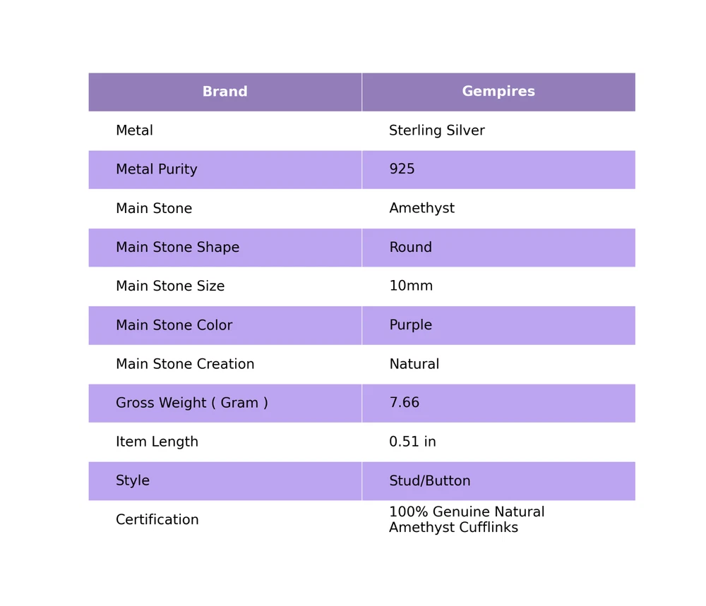 Welcome To Our Shop Gempires ------------------------------------------- Jewelry add an essence of appeal and grace to your looks; featuring a hand crafted Cufflinks with shiny Amethyst; adding a whim of beauty. Team this adornment with casual dress or with party attire! February Birth Amethyst Stone Purple Wedding Cufflinks Jewelry Sterling Silver Check My Other Cufflinks Listings : Click Here SKU: CL-3-7 Gemstone: Amethyst Stone Shape: Round Metal : 925 Sterling Silver Length: 0.51 Inches ___________________________________________________________________ Shipping Handling - Free Standard Shipping all over the world Handling Time - 2 to 5 BUSINESS Days Delivery Time - 7 to 20 Days ( Various on destination ) _________________________________________________________________ Returns - 1.We provide a 100% Money Back Guarantee, excluding shipping costs, within 30 days from the date of item receipt. 2.The item must not be altered or damaged in any way shape or form. 3.Upon receipt of the aforementioned items, your payment will be promptly refunded. 4.Please be so kind as to contact us via email in order to acquire comprehensive return instructions before proceeding with the return of the merchandise. 5.Kindly be advised to allocate a maximum period of 1 business day for the processing of all returns, in order for the appropriate credit to be applied. 6.Sizing does not affect the return policy. _________________________________________________________________ FAQ's - Q.1 ARE THE ITEMS YOU ARE SELLING BRAND NEW? We exclusively offer brand-new products, refraining from the sale of pre-owned jewelry. Our entire jewelry collection is composed of 100% natural, conflict-free pieces. We do not engage in the trade of imitation or lab-grown gemstones and diamonds. Q.2 WHAT ARE YOUR BUSINESS HOURS? we operate 24x7 as we have a dedicated team who works in different shifts to deliver the services to our valuable customers. ________________________________________________________________ Gempires is committed to delivering customers an unparalleled experience through the provision of exquisite handmade jewelry, meticulously crafted to uphold the most exacting standards of quality. Our operations encompass dual roles as both discerning connoisseurs and skilled artisans within the realm of jewelry making. We proudly hold an extensive proficiency in the fine art of enhancing gemstones, allowing us to harmonize them seamlessly with diverse aesthetic inclinations. We are delighted to extend to you the privilege of curating your very own jewelry collection. This collection will be graced by the presence of genuine and splendid natural gemstones, each possessing an innate authenticity and beauty that is truly unparalleled. **** STAY BLESSED ALWAYS*****