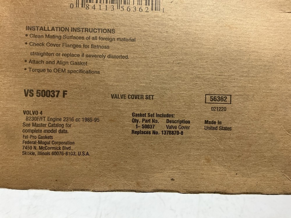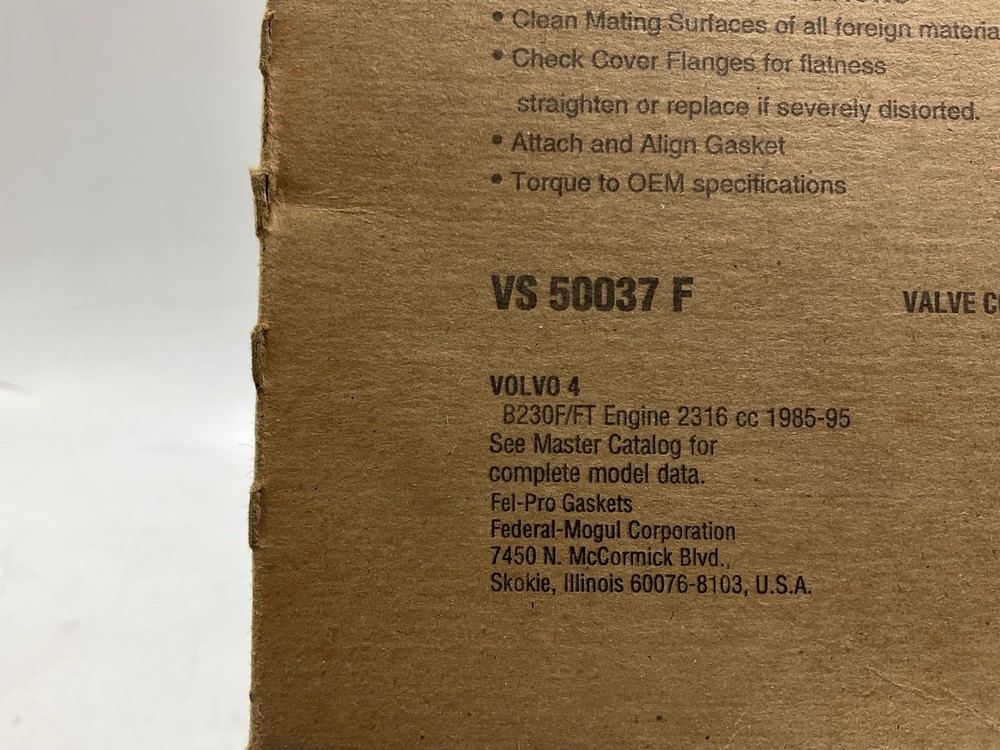 Fel-pro part number VS50037F. PLEASE NOTE: ORIGINAL FEL-PRO PACKAGING MAY BE TORN OR DISTRESSED. ALL GASKETS ARE GUARANTEED TO BE ORIGINAL FEL-PRO AND COMPLETE AS SHOWN. WE RESERVE THE RIGHT TO OPEN AND/OR VERIFY THE CONTENTS OF ANY GASKET SET. WE ALSO RESERVE THE RIGHT TO SHIP IN THE MOST ECONOMICAL WAY POSSIBLE BY ROLLING UP OR FOLDING OVER THE ORIGINAL PACKAGING WHERE APPLICABLE (EXAMPLE: RUBBER VALVE COVER GASKET). Free Shipping is for continental USA only. If you live in Alaska, Hawaii, or PR please contact us for a shipping quote before bidding. Packaging appearance and condition may vary. Examples include torn and distressed packaging and packaging that has been opened to verify contents. Items may contain shelf wear or imperfections due to the age of the product. Fitment: Applications are provided through literature and research and are correct to the best of our knowledge. Listed applications should be used as a guide and may fit additional vehicles. Please verify the part that you are ordering fits your application prior to purchase. Please contact us if you have any questions before purchasing. Shipping: Free Domestic Standard Shipping! Expedited shipping is available at an additional cost. Free shipping applies to continental US, Hawaii, Alaska, Puerto Rico and US territories. International shipping is available. Contact us before purchasing and we will determine the best rate. Items are shipped the next business day after receiving full payment. Returns: We gladly accept returns 30 days after purchase. Items must be returned in the condition that they were sent for a full refund.