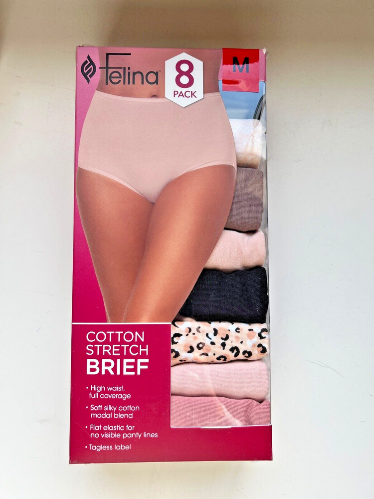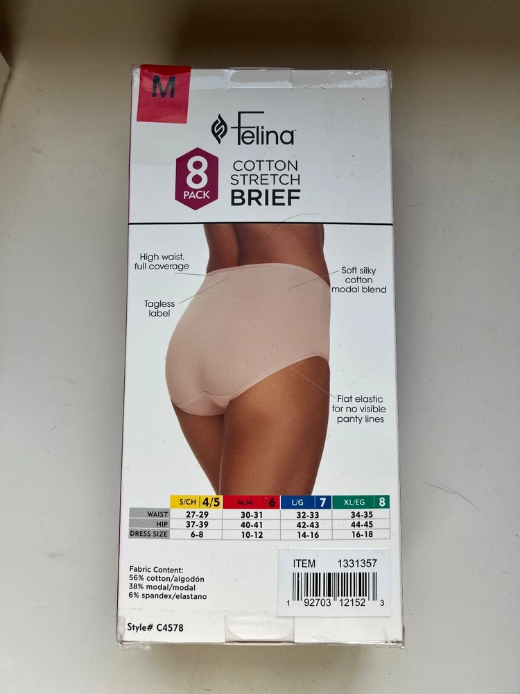 Elevate your underwear game with this 8 pack of Felina Women's Cotton Stretch Brief Underwear. Made with a comfortable blend of spandex, cotton, and modal, these briefs feature a high waist, flat elastic, and full coverage. The multicolor pack is perfect for any woman looking for a stylish and comfortable addition to her lingerie collection. Machine washable for easy care, these panties are a must-have for any woman. Whether you're running errands or dressing up for a special occasion, these briefs will provide you with the support and comfort you need. Don't miss out on this amazing opportunity to add some stylish and comfortable underwear to your wardrobe.