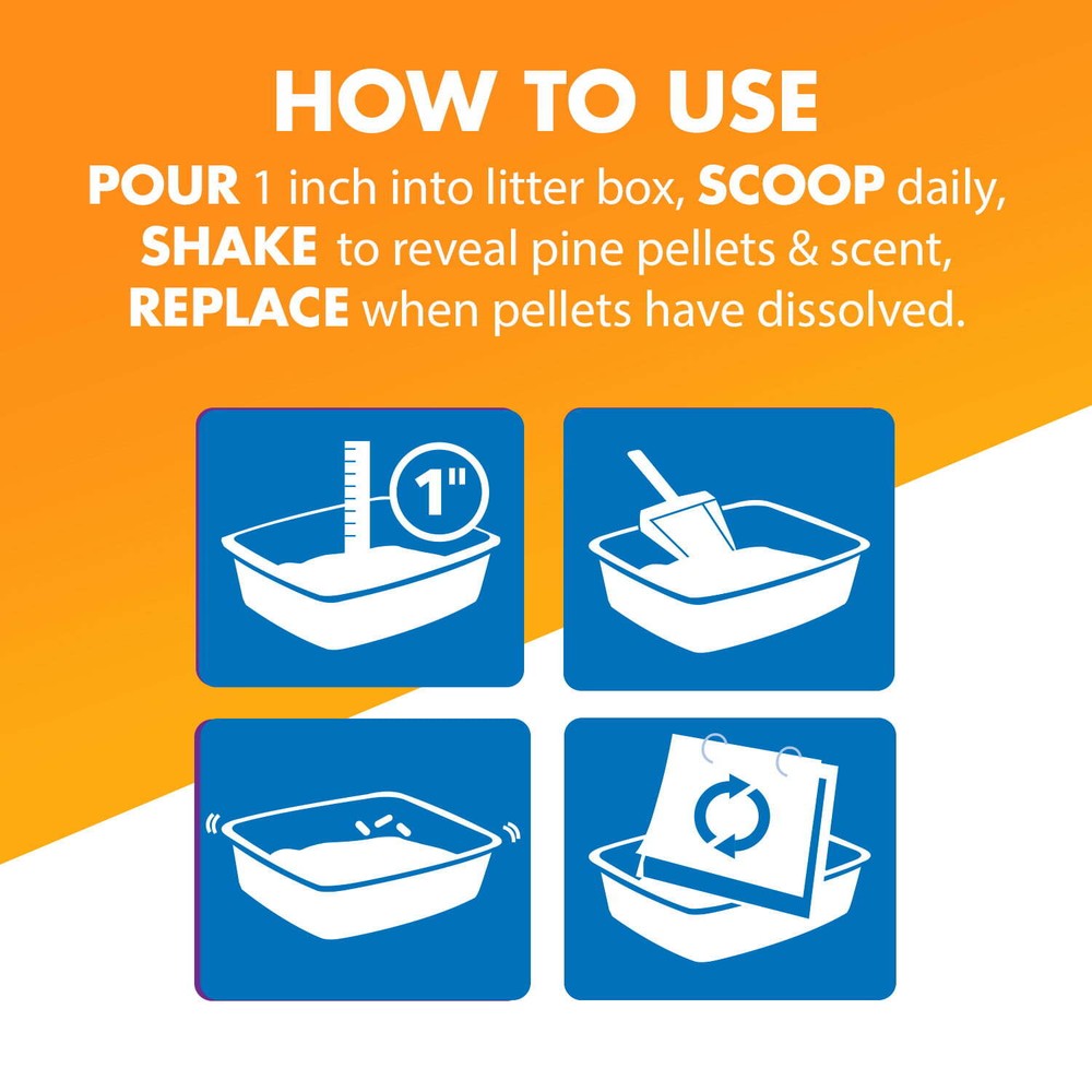 Odor control is important when it comes to your cat’s litter box, but you want a natural option for your feline companion. Feline Pine™ Non-Clumping Pine Pellet Litter delivers the best natural odor control with no added fragrances, no synthetic perfumes and no harsh chemicals. It’s responsibly made from highly absorbent, sustainably sourced natural pine shavings only from reclaimed lumber (no new trees cut down) that neutralize odor on contact. Its absorbent pine fibers work like thousands of tiny sponges to soak up liquid and lock away odors in your kitty litter box. Its natural odor-eliminating pine shavings are a litter choice that’s gentle on kitty’s paws. It’s also low dust and lightweight—less than half the weight of clay litter and leaves no messy cloud of dust. Specifications Brand Feline Pine Manufacturer Church & Dwight Co., Inc. Assembled Product Weight 41.9 lbs Manufacturer Part Number FPL70750 Animal Type Cat Model 571748 Color Multicolor On Jul 31, 2025 at 02:35:25 PDT, seller added the following information: